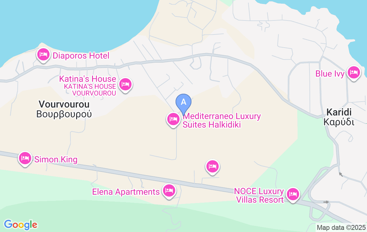 Astrum Luxury Suites se află în localitatea Vourvourou, pe coasta de est a peninsulei Sitonia, la o distanță de 600m de plaja din aceeași localitate, la 1,9km distanță de plaja Fava și la 1,3km distanță de plaja frumoasă Karidi.