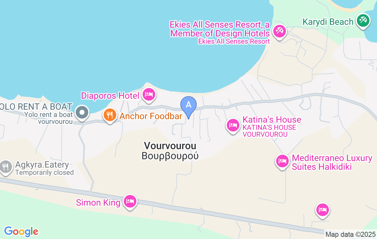 Blue Lagoon Studio se află la o distanță de 1,3km de plaja Karidi, 16,4km de Nikiti, iar de la cel mai apropiat aeroport din Salonic este la 104km.