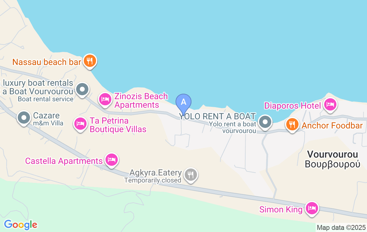 Five Shadows Of Blue Apartments se află pe plaja din localitatea Vurvuru, pe malul estic al peninsulei Sithonia. Vurvuru este special prin faptul că în apropierea sa se află un arhipelag format din nouă insule, cea mai mare fiind Diaporos, oferind astfel ceva ce nicio altă locație de pe Sithonia nu oferă, închirierea unei bărci și excursia către insula Diaporos, baie în plaje cu apă turcoaz și vedere către laguna albastră.
