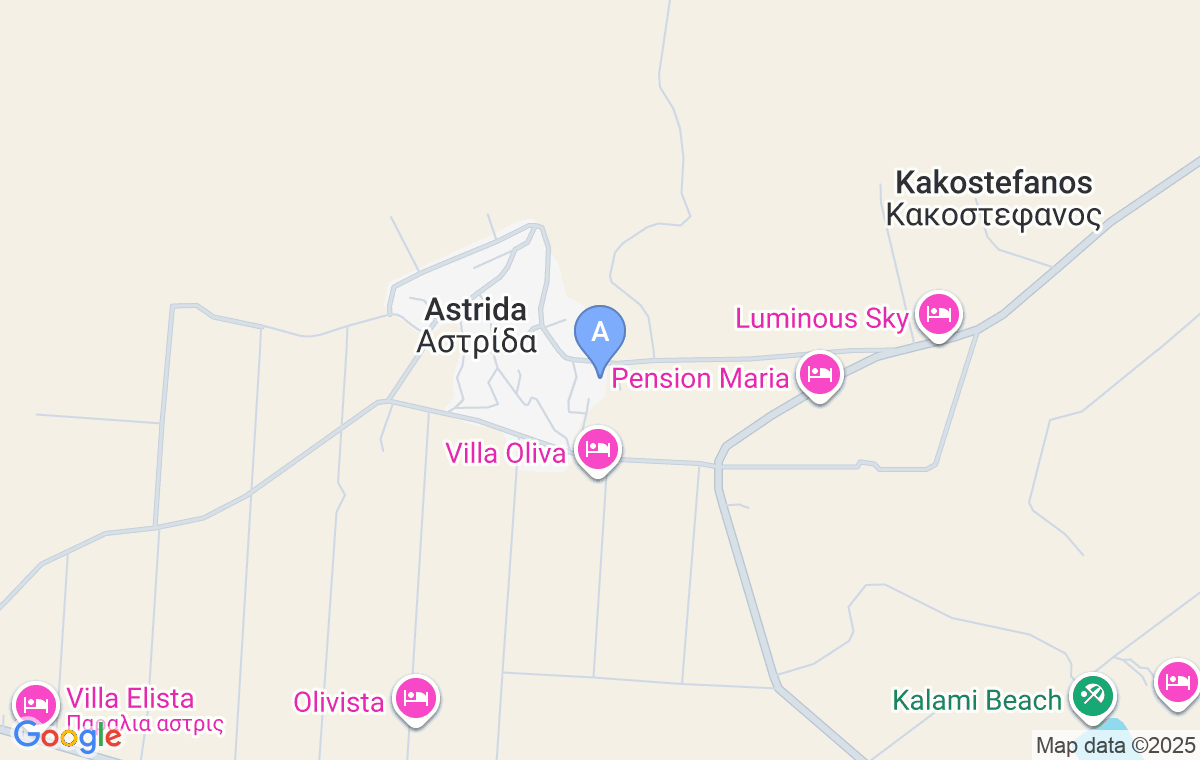 Când veniți dinspre Potos, de la Astris continuați pe drumul principal încă 3km. Veți trece pe lângă hotelul Aeria, care se află într-o curbă, și veți ajunge la Pensiunea Maria. După aceasta, virați la stânga pe stradă și continuați înainte încă 400m, apoi virați la dreapta pe strada care urcă și cazarea va fi în fața dumneavoastră după aproximativ 100m.