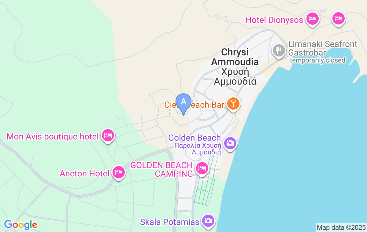 Unitatea de cazare se află pe o colină, la stânga drumului prin care se ajunge din direcția Skala Potamia. Drumul care duce la vile are o lungime de aproximativ 100-200 de metri, uneori fiind de pământ și destul de abrupt. Cu toate acestea, având în vedere că vilele se află pe o înălțime de unde se oferă o vedere fenomenală asupra Golden Beach, merită să faceți un efort să le ajungeți.