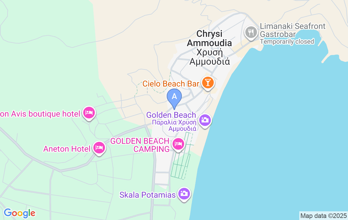 Locația este situată în Skali Panagiji, cunoscută și ca Plaja de Aur. Se află la 200 de metri de plajă și oferă trei studiouri și patru apartamente.
