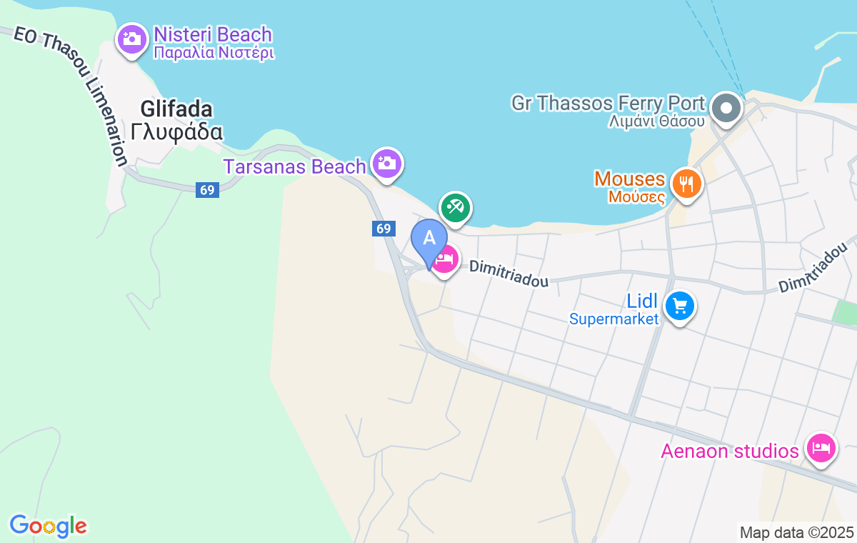 Este foarte ușor să ajungeți la această cazare, imediat ce vă debarcați continuati înainte și la intersecție virați la dreapta. Continuați să conduceți aproape până la capătul străzii, până când vedeți cazarea Molos pe partea dreaptă. Chiar în fața acestuia se află Nefelis, înainte de intersecție și înainte de ajunge la Golden Beach, respectiv Potos.
