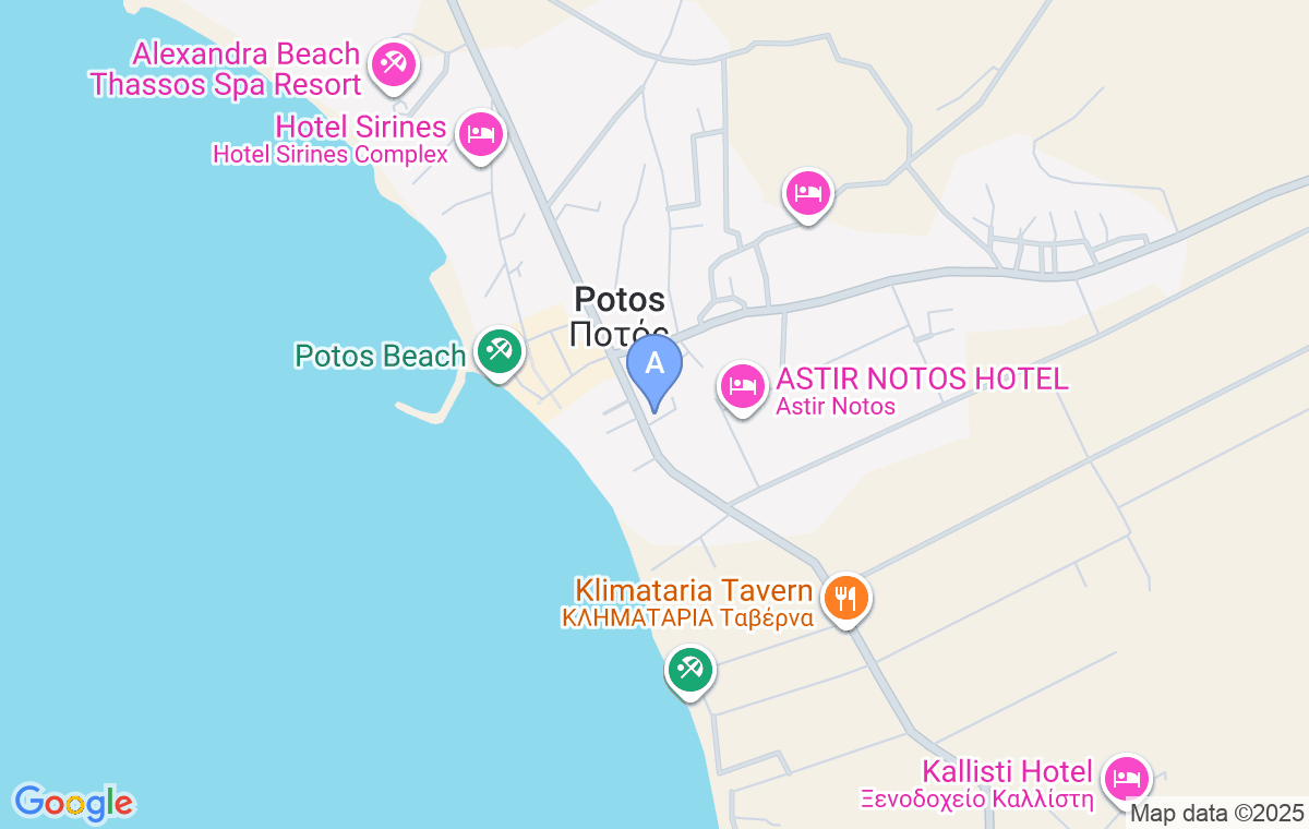 Cazarea se află pe strada principală lângă biserică. Plaja este la 100 de metri distanță, iar intersecția principală din Potos este la 50-70 de metri distanță. Supermarketul este la 30 de metri distanță.