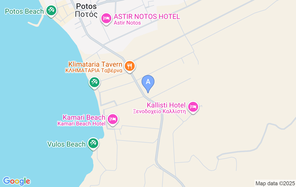 Venind din direcția Limenariei, la intersecția centrală mergeți înainte spre ieșire și conduceți încă un kilometru. Vila Elsa o veți vedea la aproximativ 100 de metri după restaurantul Klimataria, în partea stângă a drumului principal, în fața intrării către hotel Atrium.
