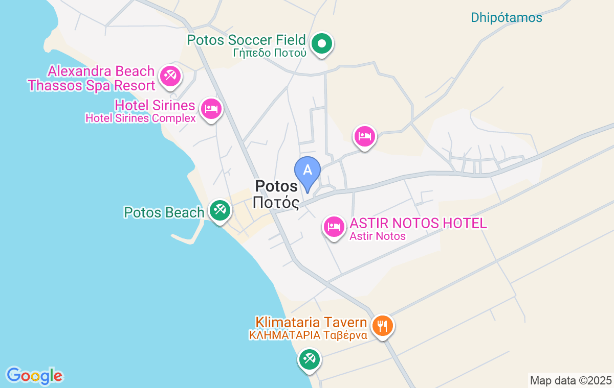 Cazarea se află la 150 de metri de intersecția centrală din Potos. Venind dinspre Limenaria, la parcarea de distracții, virați la stânga și veți vedea Karipidis Pension pe partea stângă a străzii. De la plajă este la 250m distanță, iar de la faleza, magazine, taverne, doar un minut de mers pe jos.