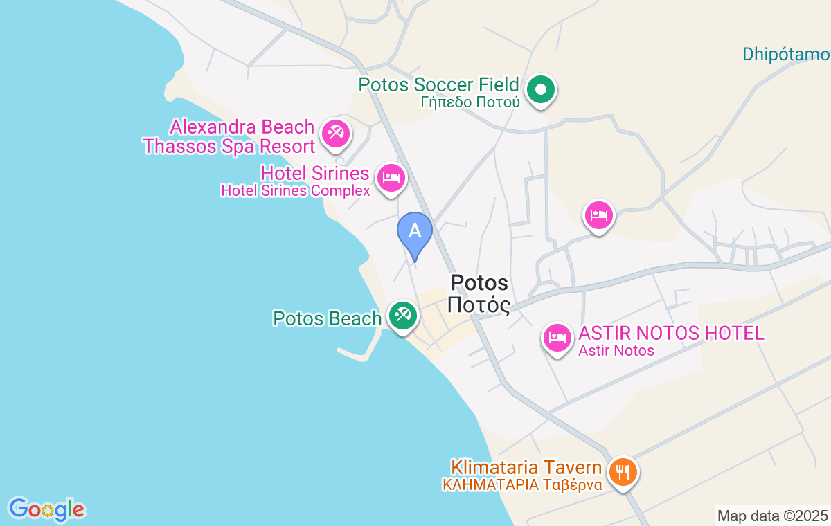 Venind dinspre Limenaria, imediat la intrarea în Potos după hotelul Alexandra Beach, veți vedea un drum care se desprinde ușor spre dreapta de la șosea. Mergeți pe acesta aproximativ 150m și veți vedea vila Dora pe partea stângă a drumului. De la cele mai apropiate magazine, supermarketuri și brutării vila este la câțiva zeci de metri distanță, iar de la plaja orașului aproximativ o sută de metri. Mini marketul este la stânga porții, iar magazinul de îmbrăcăminte la dreapta.