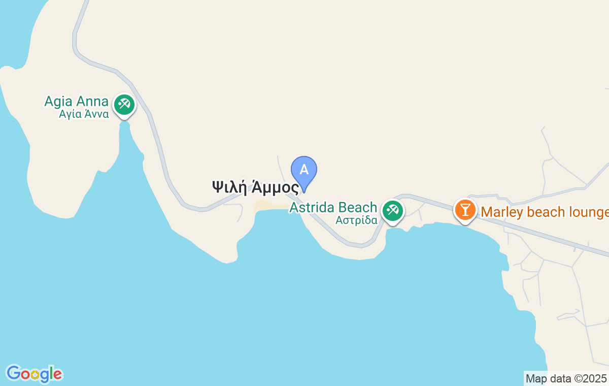Cazarea este situată pe o coastă înclinată, chiar în fața plajei Psili Ammos, separate doar de șosea.