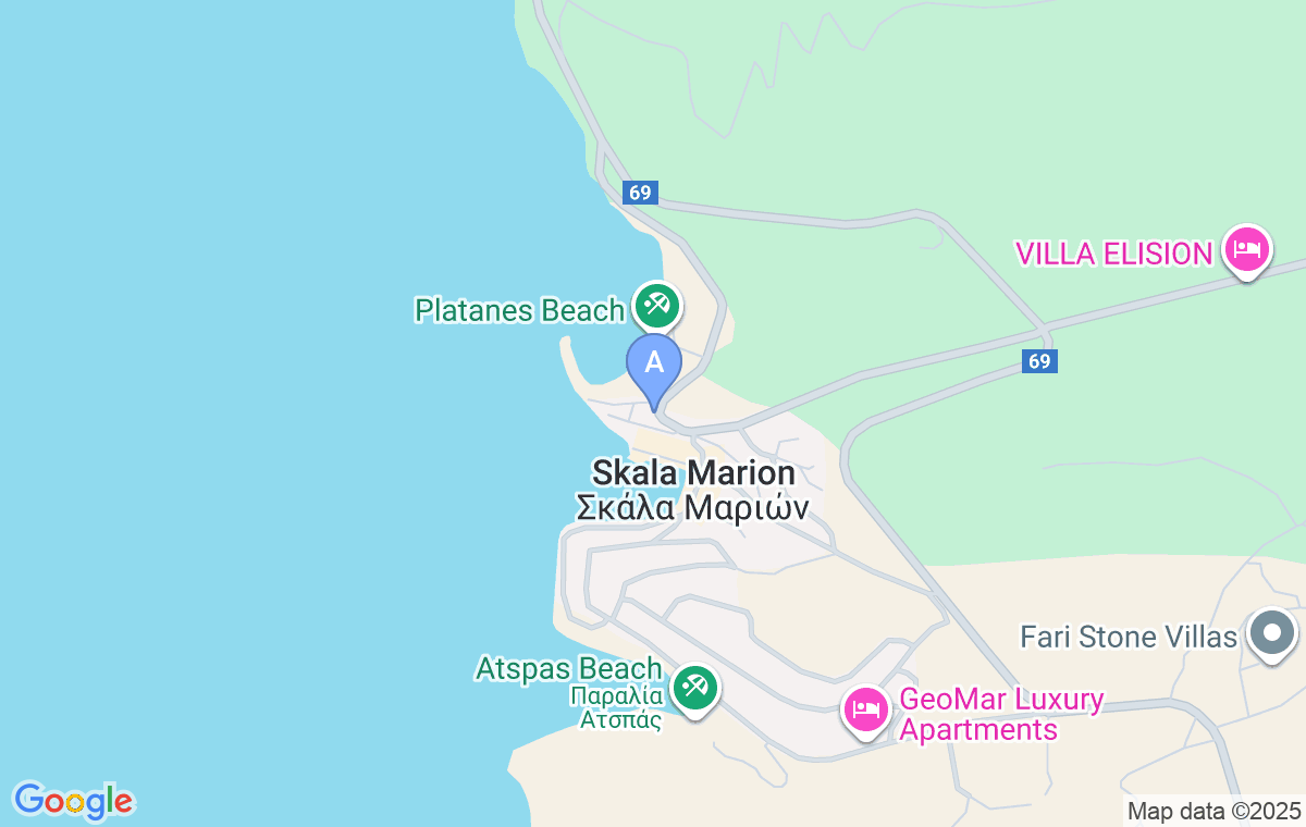 Cazarea este situată în Skala Maries, la două străzi distanță de ‘centrul’ orașului. Cel mai apropiat magazin se află la aproximativ 220m distanță, în timp ce cele mai apropiate taverne, cafenele și patiserii se găsesc la aproximativ 130m.