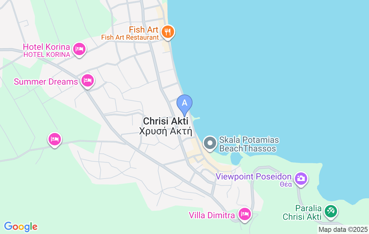 Când ajungeți la intersecția centrală din Skala Potamia (dinspre plaja Golden Beach), faceți la stânga și continuați înainte până când ajungeți la promenadă și la mare, apoi faceți din nou la stânga până când vedeți restaurantul Corali la stânga, iar după aceea bancomatul și fish spa în spatele cărora se află această locație.