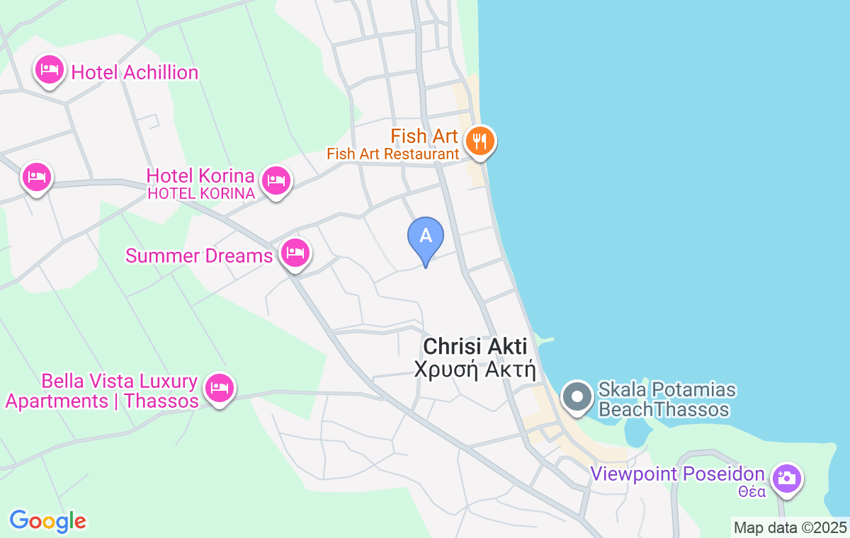 Când debarcați de pe feribot în Limenas, urmați drumul către Panagia și Potamia. După aproximativ 7km, veți ajunge la Panagia, treceți prin centru și urmați drumul către Skala Potamia. După ce treceți de stația de benzină BP, virați la stânga după 900m lângă studiourile Thoma, apoi conduceți 400m și virați la dreapta, apoi virați din nou la prima stradă și după 100m, în partea stângă, veți vedea vila Polina.