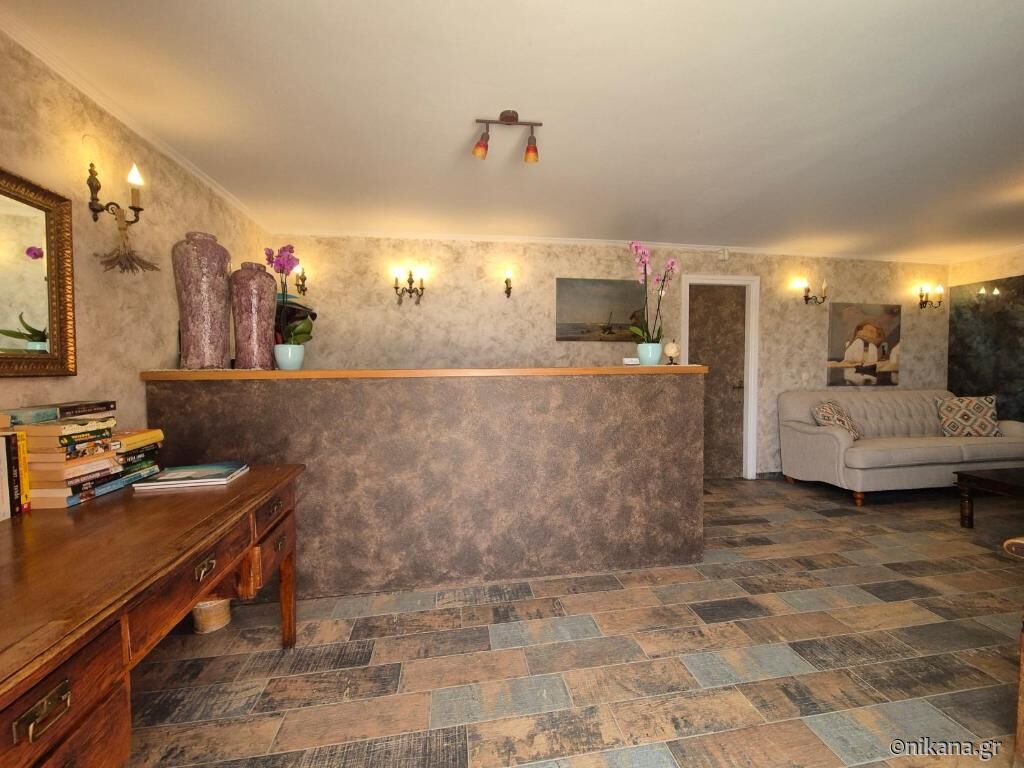 După ce intrați în Vrahos, conduceți pe plajă timp de 2,5 km până când vedeți, pe partea stângă, recepția și restaurantul hotelului Vrachos Beach.
