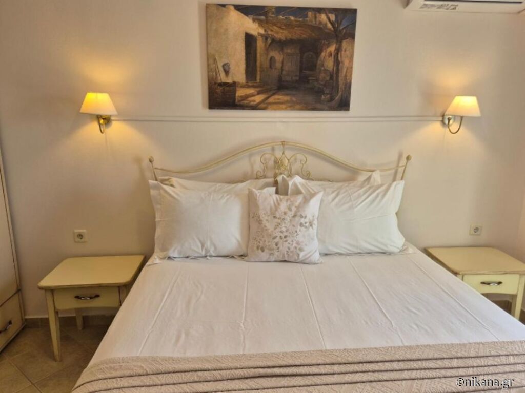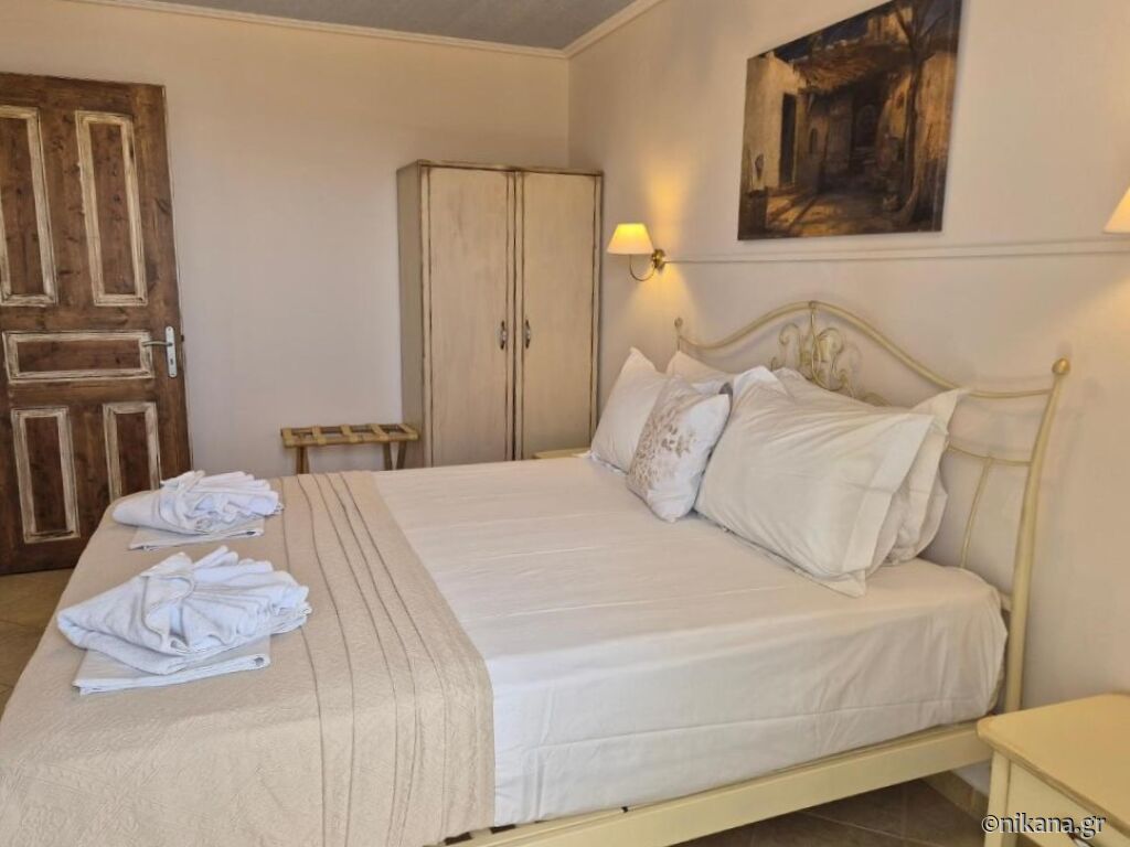 Vrachos Beach Hotel se află în Vrahos, chiar în fața plajei (între ele fiind doar un drum). Aici, oaspeților li se oferă studiouri și apartamente pentru 2-5 persoane, piscină, restaurant, internet wireless și bar la piscină. Este înconjurat de livezi de măsline și are parcare pentru toți oaspeții.
