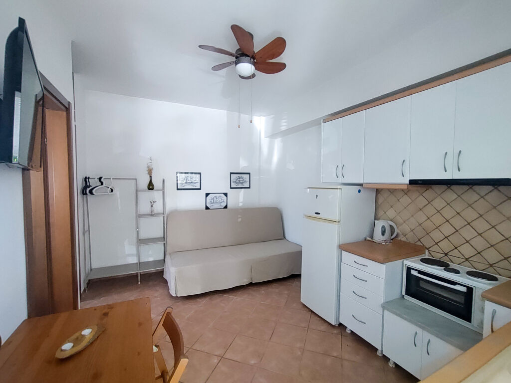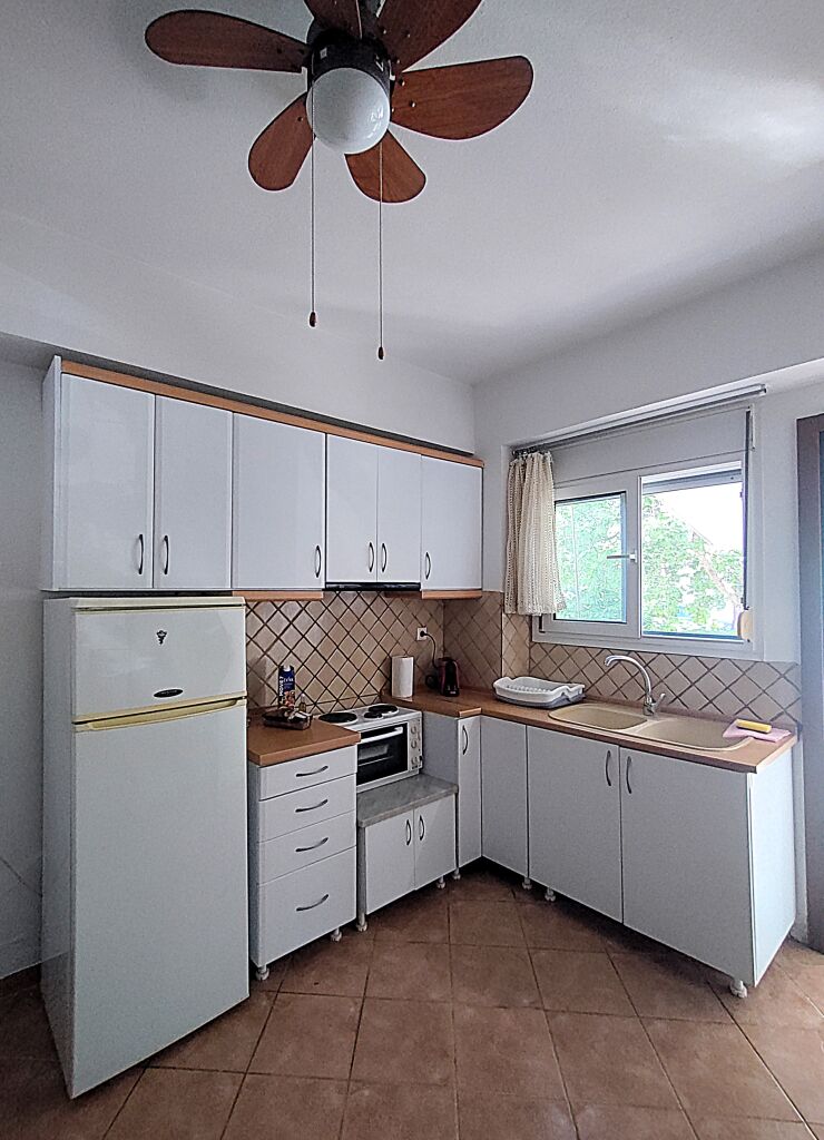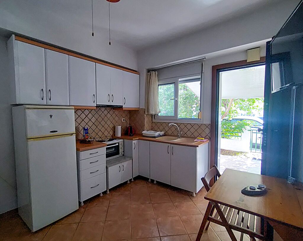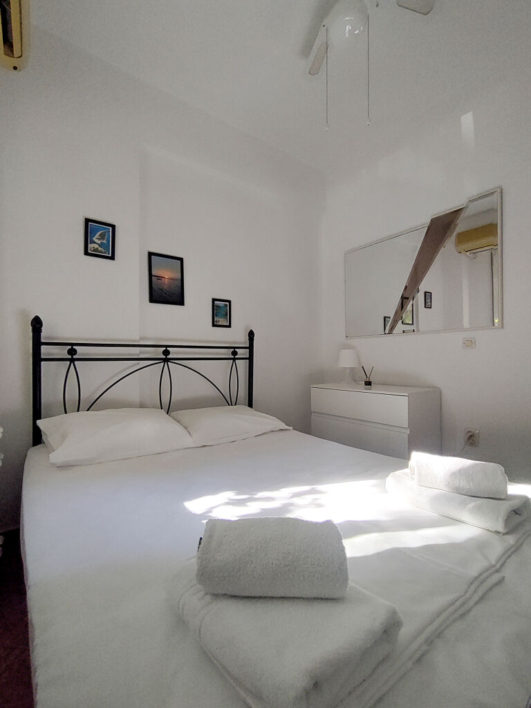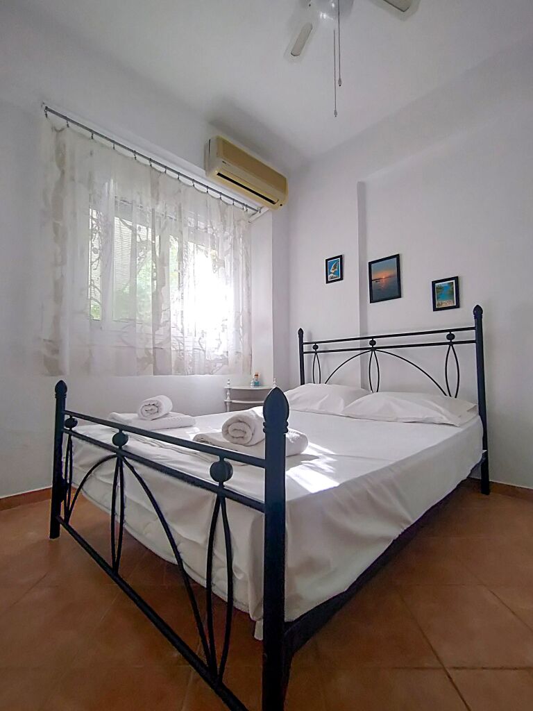 Apartamentul este la parter, pe partea laterală a clădirii, și are propriul său acces separat în curte. Are o suprafață mai mică (25m2) și nu are terasă, ci un spațiu liber cu o copertă. În camera de primire se află o canapea extensibilă, TV, precum și o bucătărie complet utilată, cu masă și scaune, cu un frigider mare cu congelator și cu un aragaz cu trei ochiuri și cu cuptor. Dormitorul este mic, cu o pat matrimonial și un dulap, iar în baie se află o dușă construită cu o perdea.