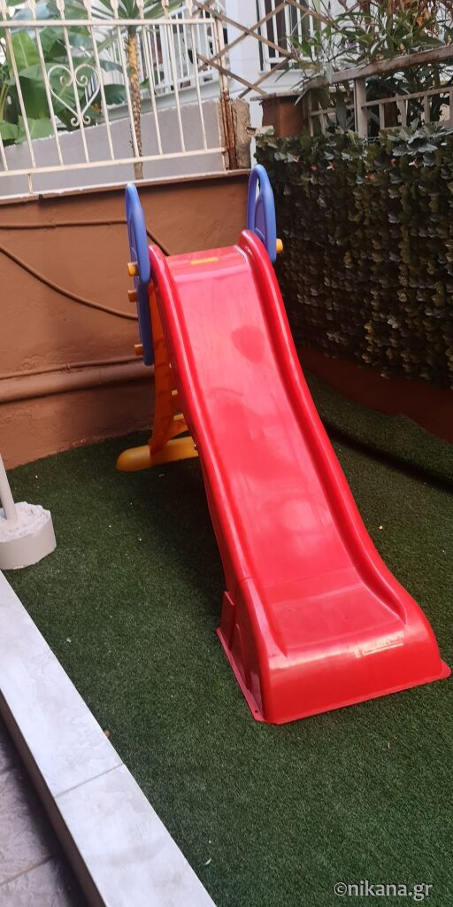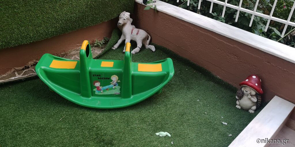 Oaspeții celor două unități de cazare de la parter au acces și la o curte cu jucării.
