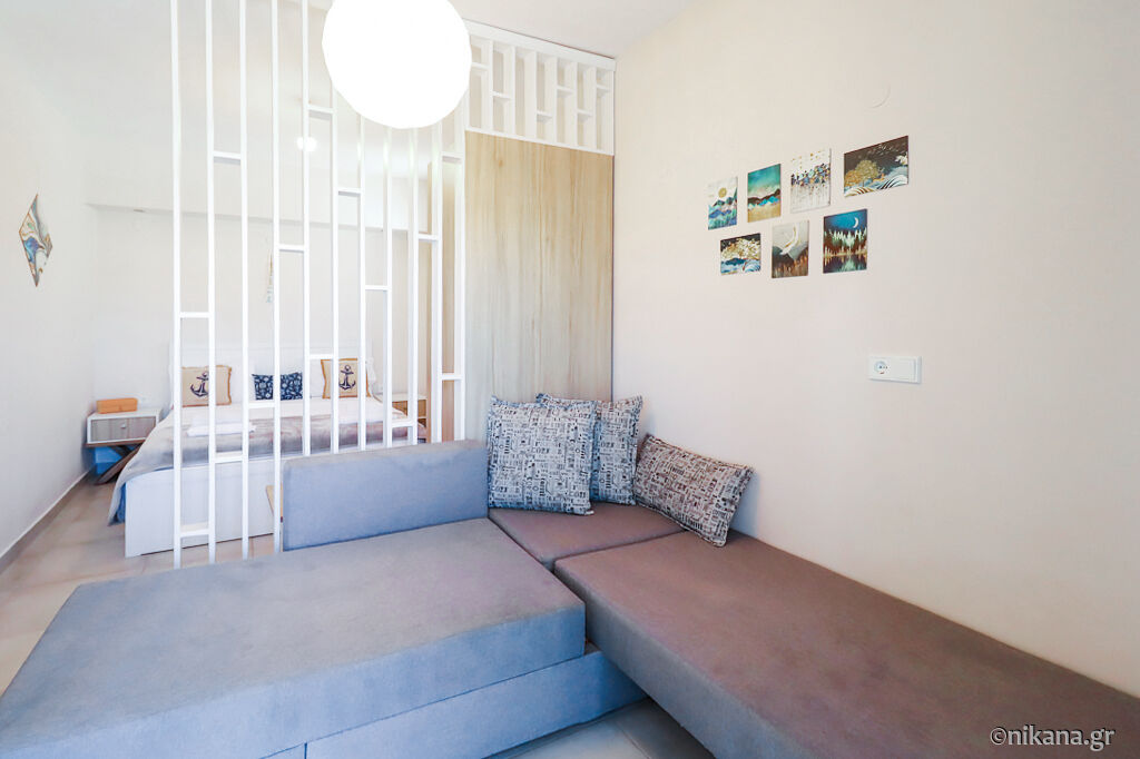 Sunt disponibile studiouri duble, triple și cvadruple, precum și apartamente triple și cvadruple. În studiourile duble se află un pat matrimonial, în cele triple un pat matrimonial și o canapea, iar în studiourile cvadruple un pat matrimonial și o canapea pentru două persoane. În apartamentul triplu se află un pat matrimonial și o canapea pentru o persoană, iar în apartamentele cvadruple un pat matrimonial și o canapea pentru două persoane.