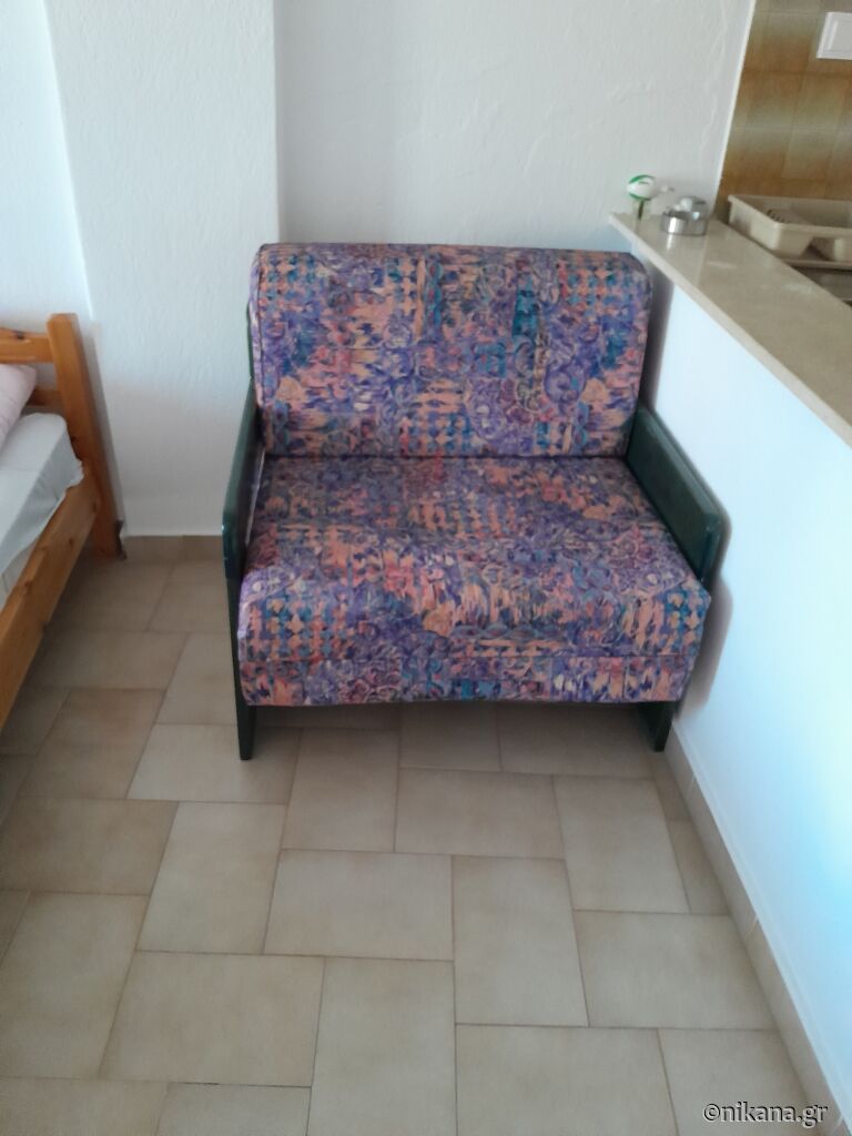 Cazarea este puțin mai modestă, dar excelent întreținută și curată. Are rezervoare proprii de apă, deci nu trebuie să vă faceți griji pentru restricțiile de apă. Sunt disponibile studiouri pentru trei și patru persoane, care au bucătărie și baie. Studiourile pentru trei persoane sunt destinate pentru cel mult trei adulți și sunt situate la parter sau la primul etaj înalt, în timp ce studiourile pentru patru persoane sunt situate la primul etaj și sunt destinate pentru cel mult trei adulți și un copil.