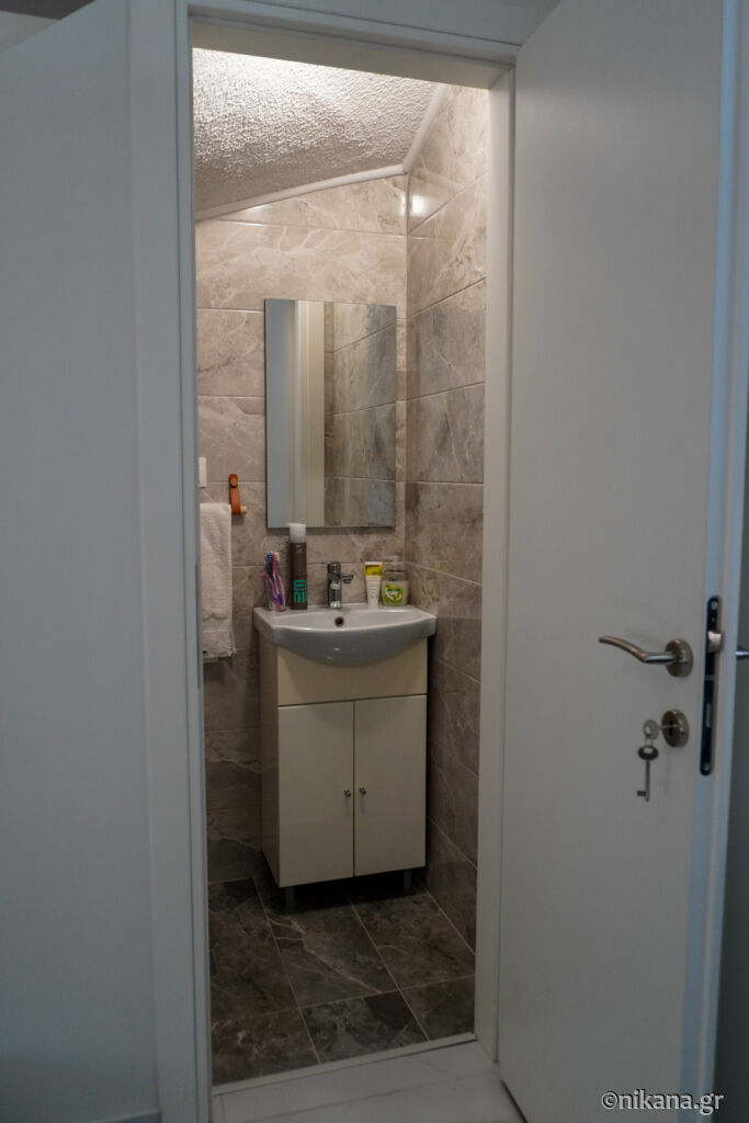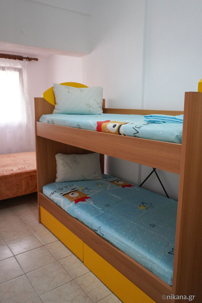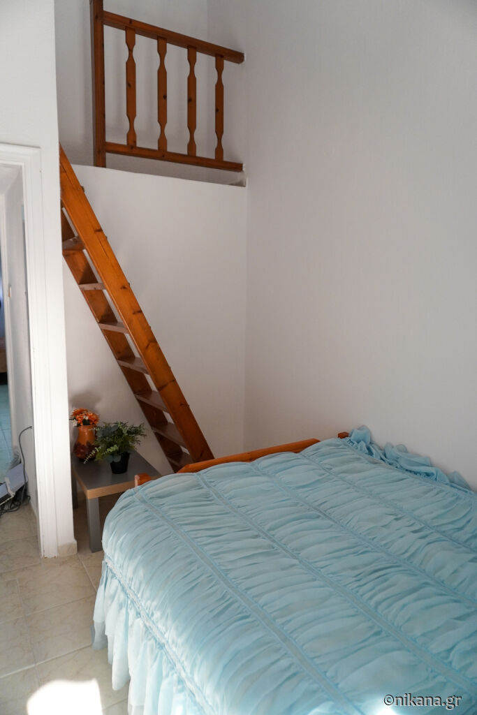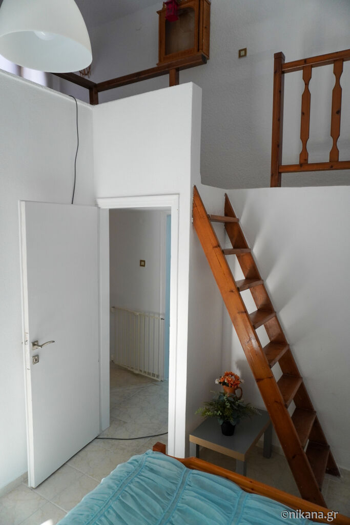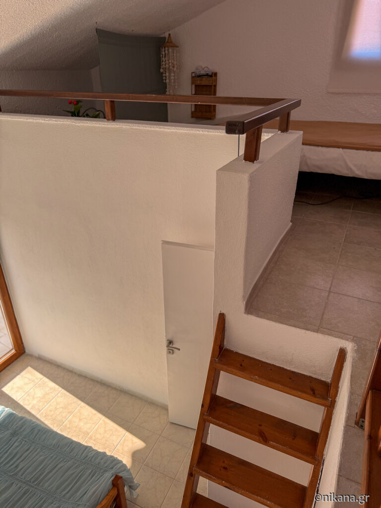 Apartamentul, organizat ca o mezonetă datorită dispunerii camerelor, se întinde pe două nivele și este destinat pentru cazarea a cel mult șase adulți și doi copii. La nivelul inferior, respectiv la primul etaj, se află camera de zi cu bucătărie și toaletă, în timp ce nivelul superior, al doilea etaj al clădirii, cuprinde două dormitoare, o baie și o galerie deschisă la care se ajunge cu scara interioară dintr-una dintre dormitoare. Într-un dormitor se găsește un pat dublu și paturi supraetajate, în timp ce celălalt dispune de două paturi duble, unul dintre ele fiind amplasat în galerie.