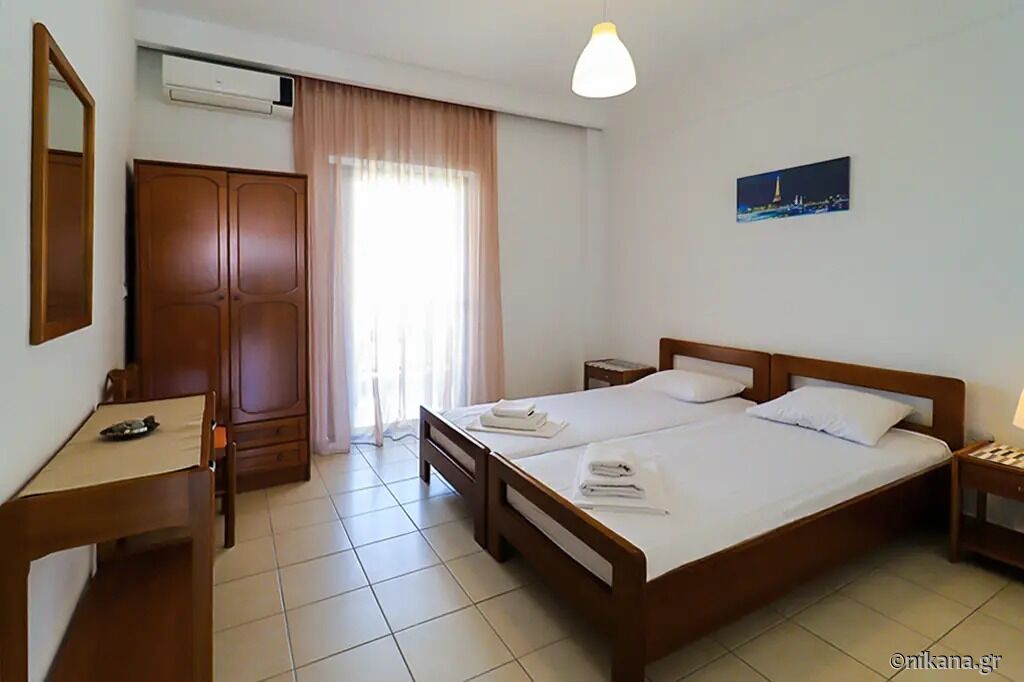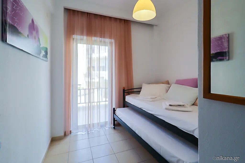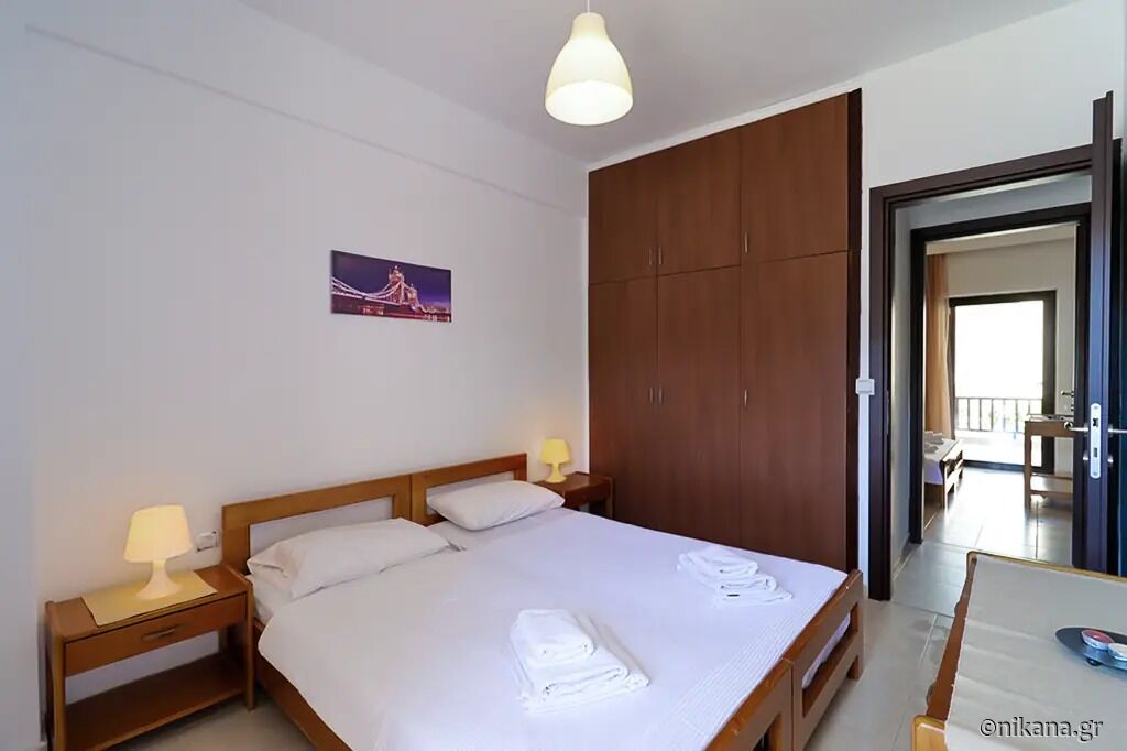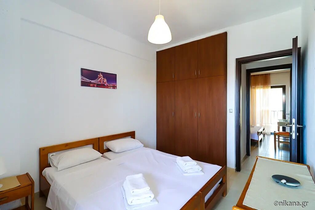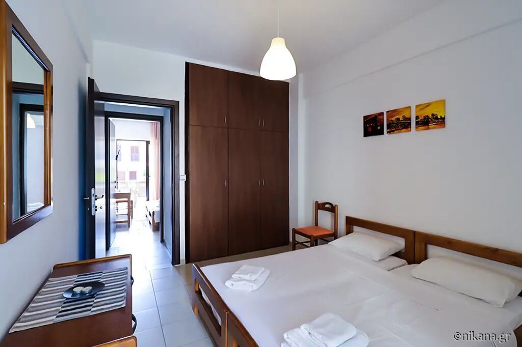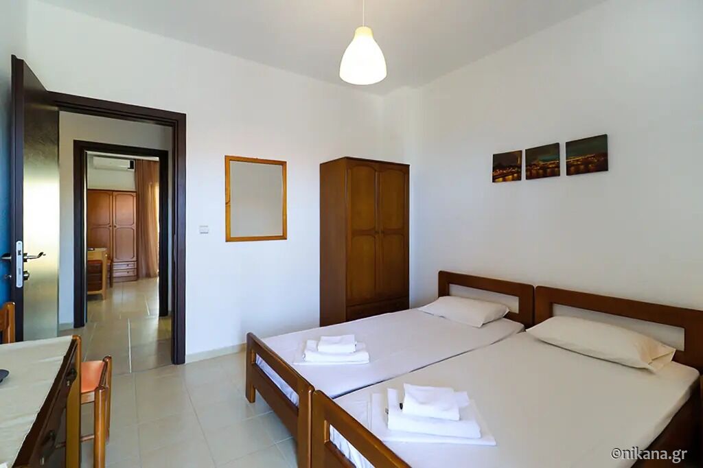 În ofertă sunt trei apartamente, situate la parter sau la primul etaj. Apartamentul cu două dormitoare poate găzdui maximum patru adulți și se află la primul etaj. Acesta este compus din bucătărie cu zonă de luat masa, două dormitoare și baie. În fiecare dormitor se află câte două paturi de o persoană unite.