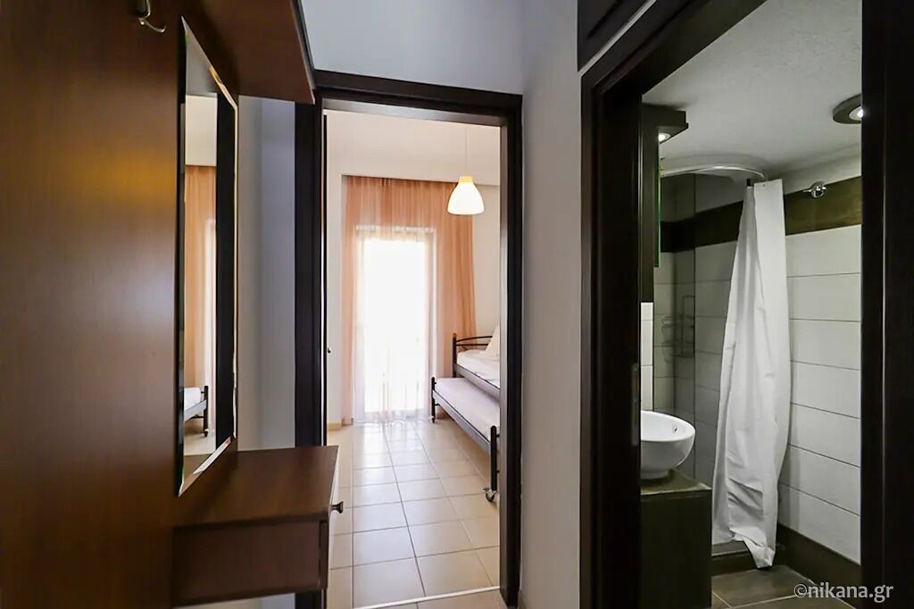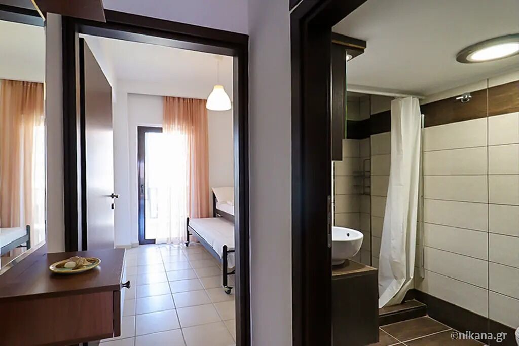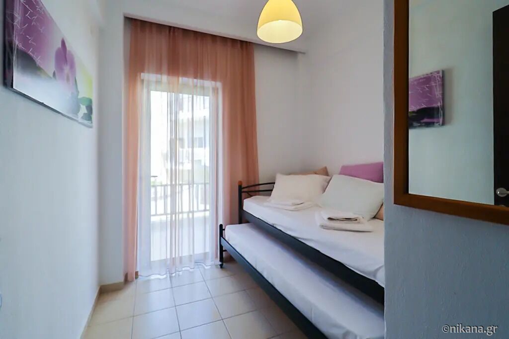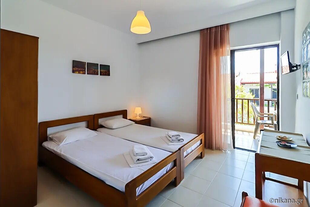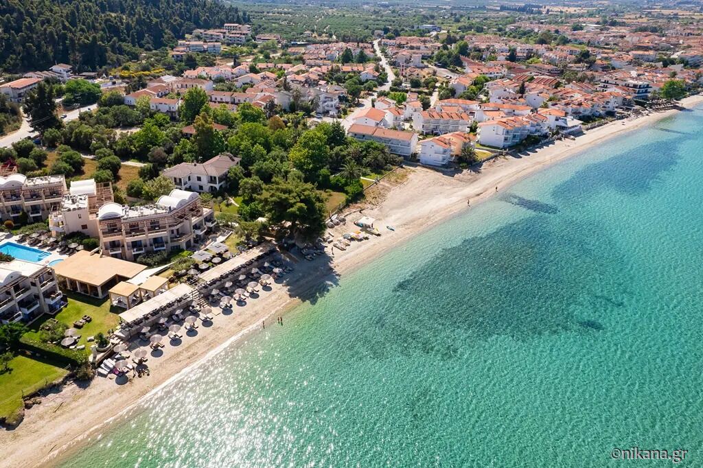 Roxani First Line Apartments se află în liniștita localitate de coastă Skala Fourka, la doar aproximativ 80 de metri de plaja cu nisip, ceea ce îl face o alegere ideală pentru o vacanță de vară liniștită și relaxantă. Datorită poziției sale excelente, oaspeții se pot bucura cu ușurință de apropierea mării, dar și de atmosfera plăcută și discretă a unei stațiuni mai mici. Unitatea de cazare este amenajată modern, cu o atenție deosebită acordată confortului și funcționalității, fiind potrivită atât pentru familii, cât și pentru grupuri de prieteni care își doresc o vacanță de calitate și plăcută în imediata apropiere a mării. Plaja din Skala Fourka este cunoscută pentru nisipul fin, apa limpede ca cristalul și intrarea lină în mare, potrivită pentru toate vârstele. Experiența este completată de culoarea deosebită albastru-verzuie a mării, rezultată din îmbinarea apei limpezi cu pădurile de pini care înconjoară țărmul.