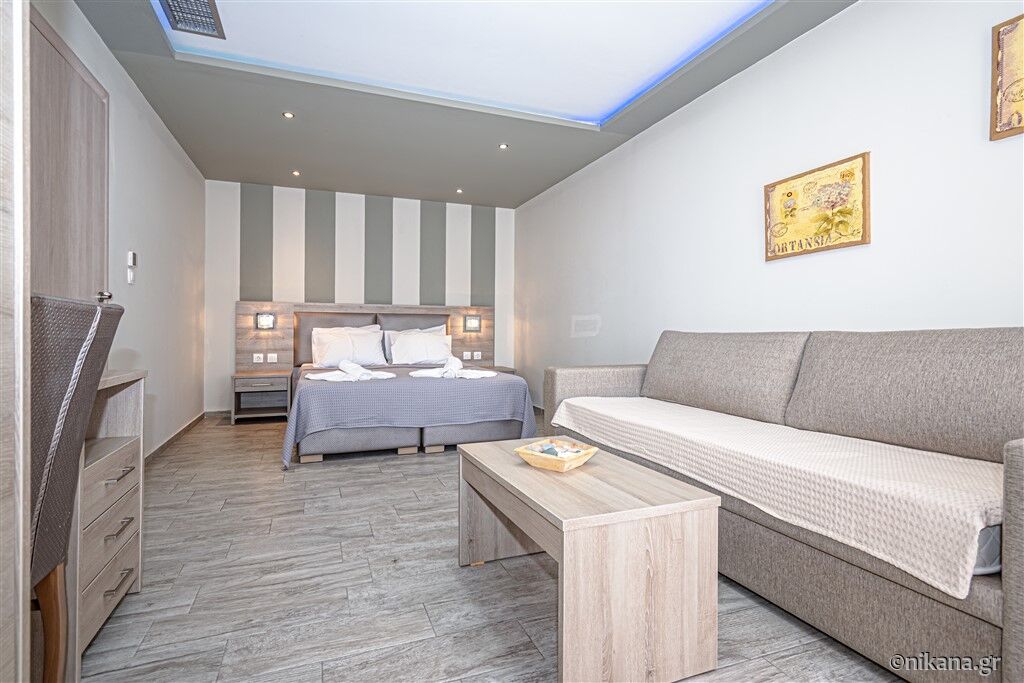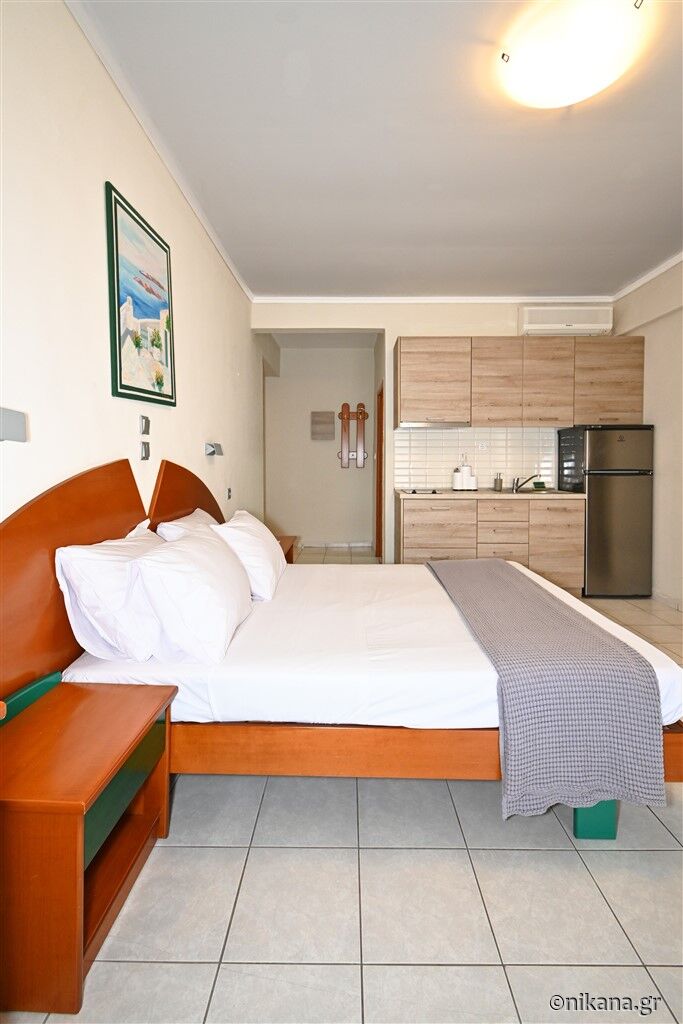 În ofertă se regăsesc studiouri duble și cvadruple, precum și apartamente pentru cinci și șase persoane. Studioul dublu este situat la primul etaj și poate găzdui maximum două persoane adulte. Acesta dispune de un spațiu de dormit cu chicinetă și baie. Este dotat cu un pat matrimonial.