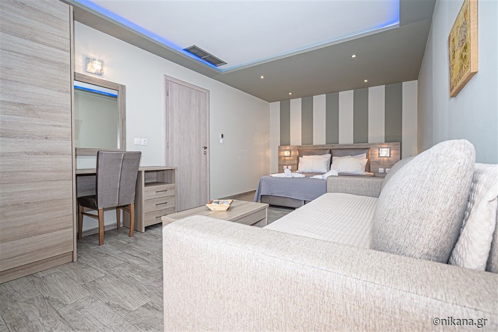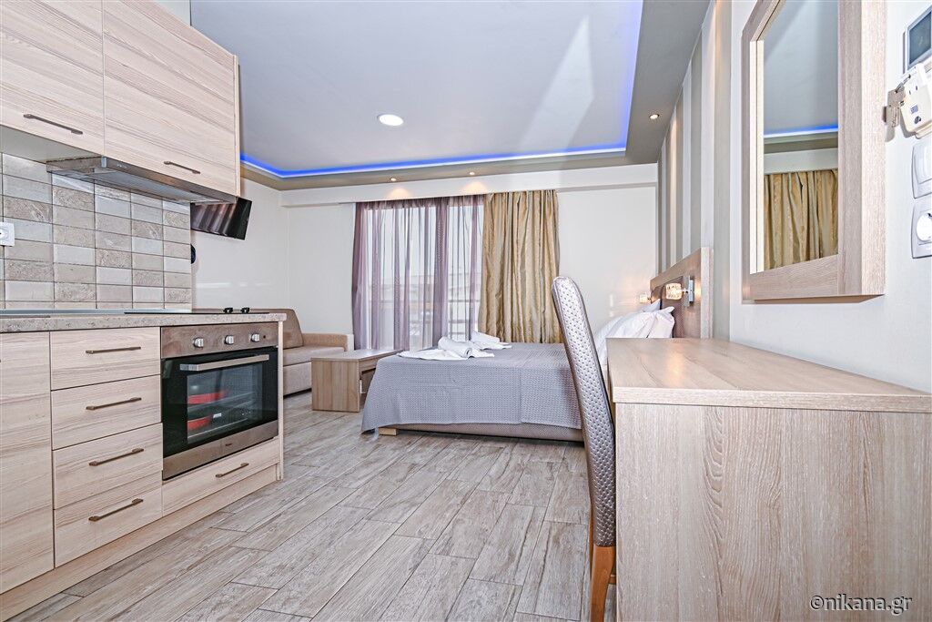 Casa Consta Apartments este situat chiar în centrul stațiunii Pefkohori, la doar 40 de metri de plajă, ceea ce le permite oaspeților să se bucure pe deplin de avantajele unei locații excelente. Apropierea de mare, promenadă, restaurante, cafenele și magazine face ca acest tip de cazare să fie o alegere ideală pentru cei care își doresc ca totul să fie la îndemână. Unitățile de cazare sunt amenajate ordonat și funcțional, cu detalii atent alese, care oferă o senzație de confort și o atmosferă plăcută pe durata sejurului. Apartamentele sunt concepute pentru a asigura oaspeților un sejur confortabil, fie că vin pentru o vacanță scurtă sau pentru un sejur mai lung. Pefkohori este o stațiune animată, cunoscută pentru plaja sa lungă cu nisip, oferta bogată de restaurante, taverne și divertisment de seară. Localitatea este ideală pentru plimbări, savurarea bucătăriei mediteraneene și o atmosferă estivală relaxată. Un avantaj suplimentar îl reprezintă buna conexiune cu alte localități populare și plaje frumoase din Kassandra, oferind oaspeților posibilitatea unor excursii variate și explorării împrejurimilor.