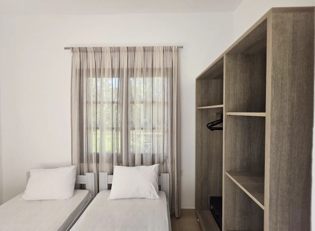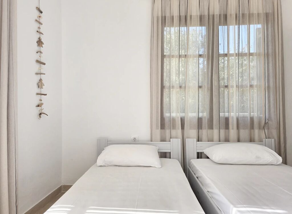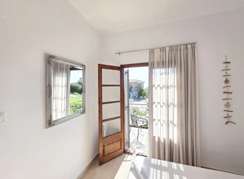 Oaspeții se pot relaxa pe terasele spațioase și balcoanele dotate cu mobilier de exterior, de unde se poate admira o priveliște relaxantă către curte și marea din depărtare. O facilitate specială este oferită de balconul suplimentar, privat, care duce direct din dormitor.