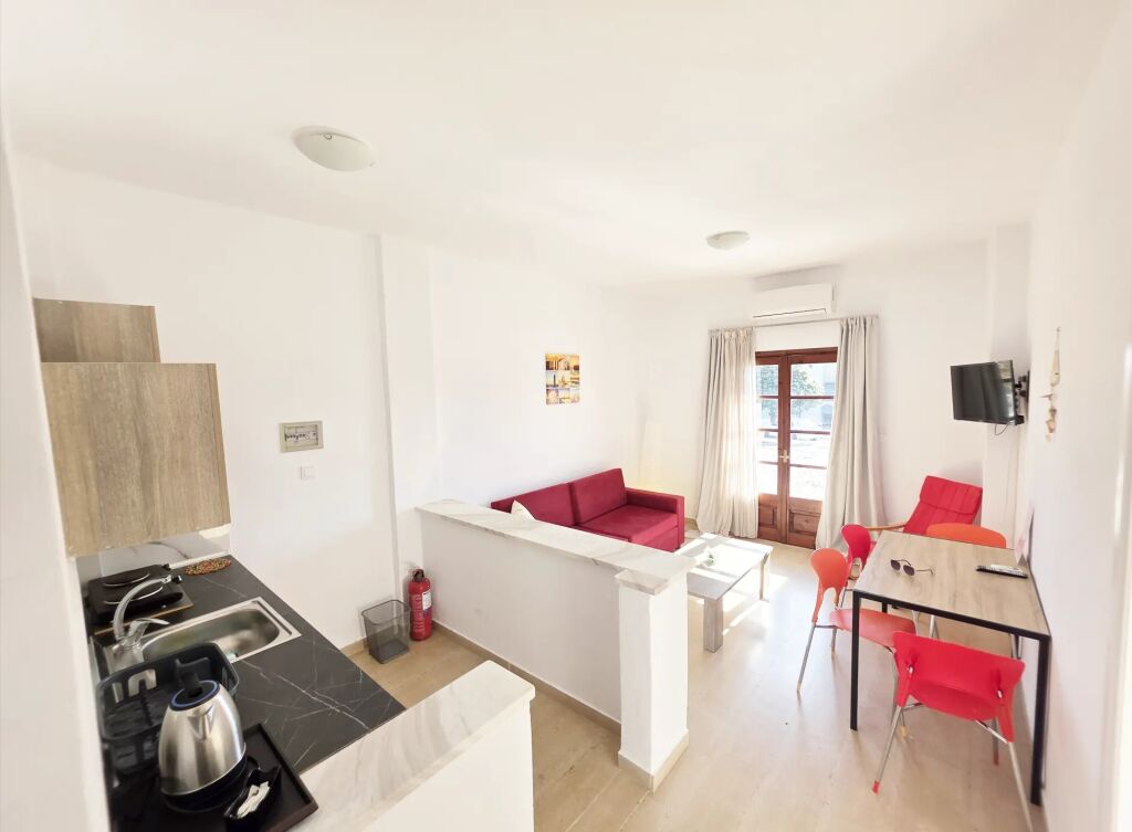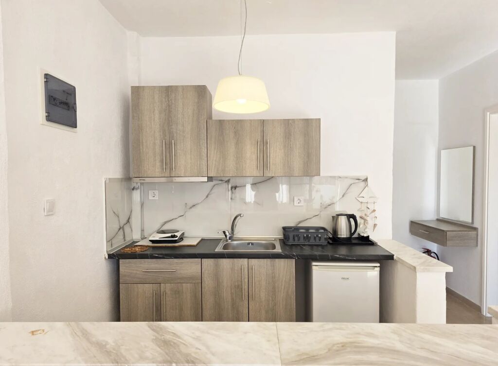 Theros A Apartments este situat în inima Mola Kalive, un sat de pescari liniștit de pe coasta de vest a Kassandra, și reprezintă refugiul ideal pentru cei care caută adevăratul odihnă. Faimoasă pentru apele sale cristaline și ritmul său de viață liniștit, fără turism de masă, această locație oferă o combinație perfectă de briză marină și miros de pădure de pini. Proprietatea este situată la doar 120 de metri de plajă.