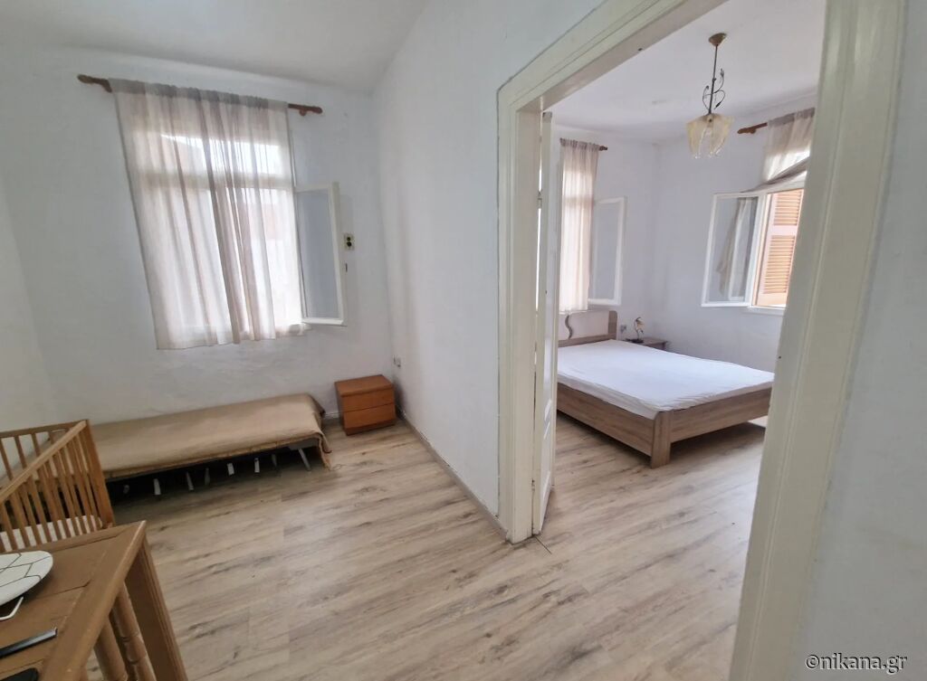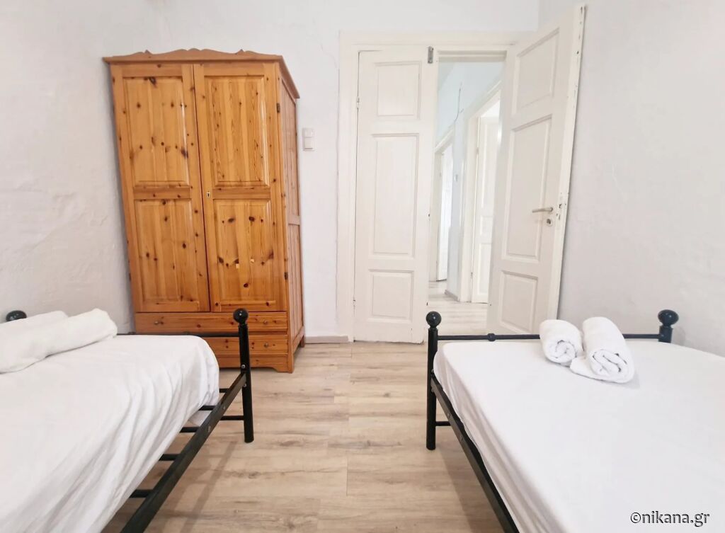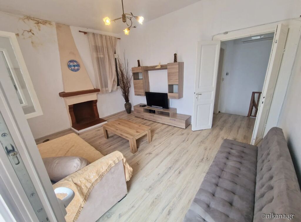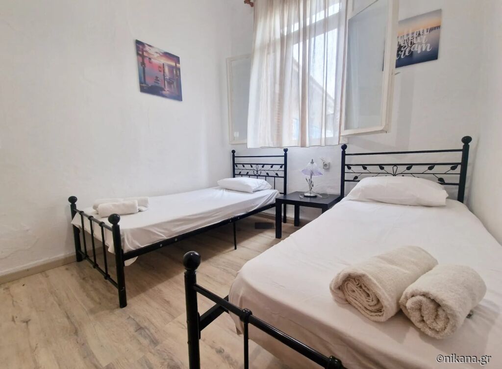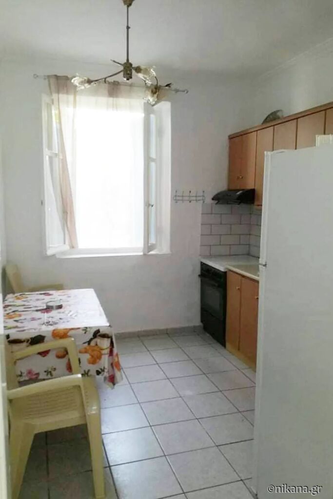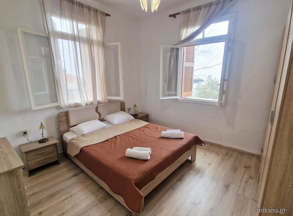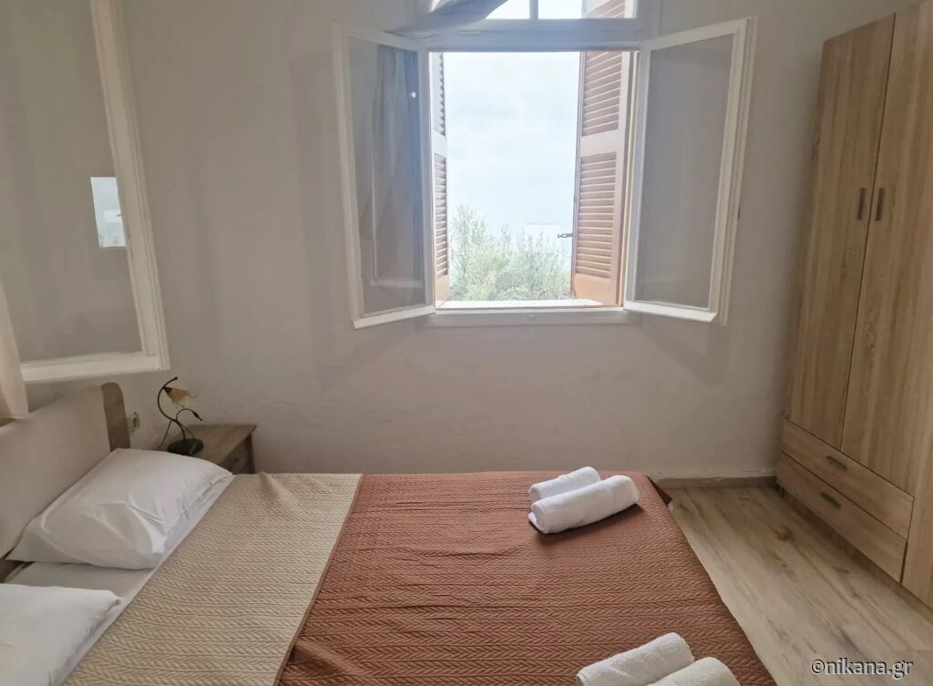 Această casă tradițională cu două etaje oferă vedere la mare din toate camerele. La etaj sunt trei camere separate. În una se află un pat dublu, în cealaltă două paturi de o persoană, iar în camera de zi două canapele și o comodă cu televizor, în timp ce în galerie mai este o canapea și un pat de copil. La parterul casei se află o bucătărie complet utilată și o baie. În bucătărie se găsește un cuptor cu patru arzătoare și un frigider mare cu congelator. În baie se află o cabină de duș cu cortină.