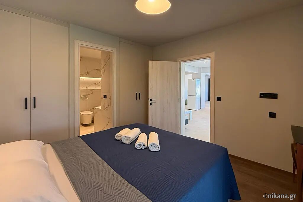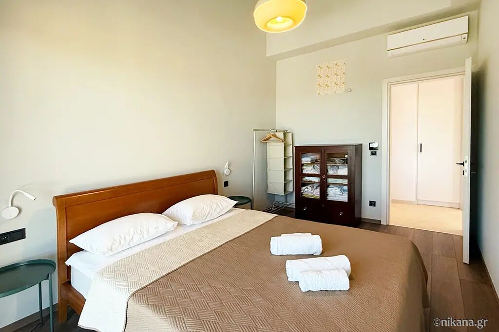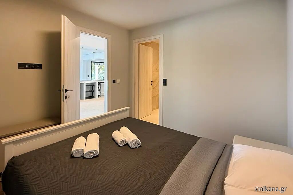 Vila se întinde pe două niveluri și, datorită structurii sale, reprezintă o mezonetă spațioasă destinată cazării a până la doisprezece adulți. Primul nivel, parterul, se remarcă printr-un mediu plăcut și include un salon mare conectat la bucătărie și sufragerie, două dormitoare cu băi proprii, precum și o toaletă suplimentară. Al doilea nivel, etajul, continuă povestea confortului și conține încă un salon cu bucătărie și zonă de luat masa, trei dormitoare și două băi. Fiecare dormitor este echipat cu un pat matrimonial, în timp ce în salon se află o canapea pentru două persoane. Acest aranjament oferă o echilibrare perfectă între intimitate și spațiu comun, astfel că vila devine alegerea ideală pentru familii mari sau grupuri de prieteni care doresc să se bucure de o vacanță de lux, cu un sentiment de confort și atmosferă familială.