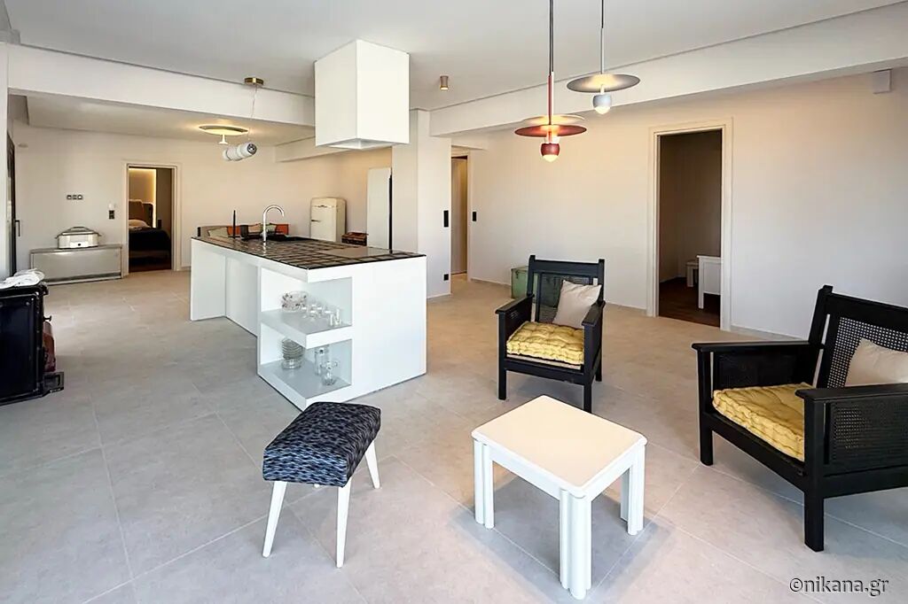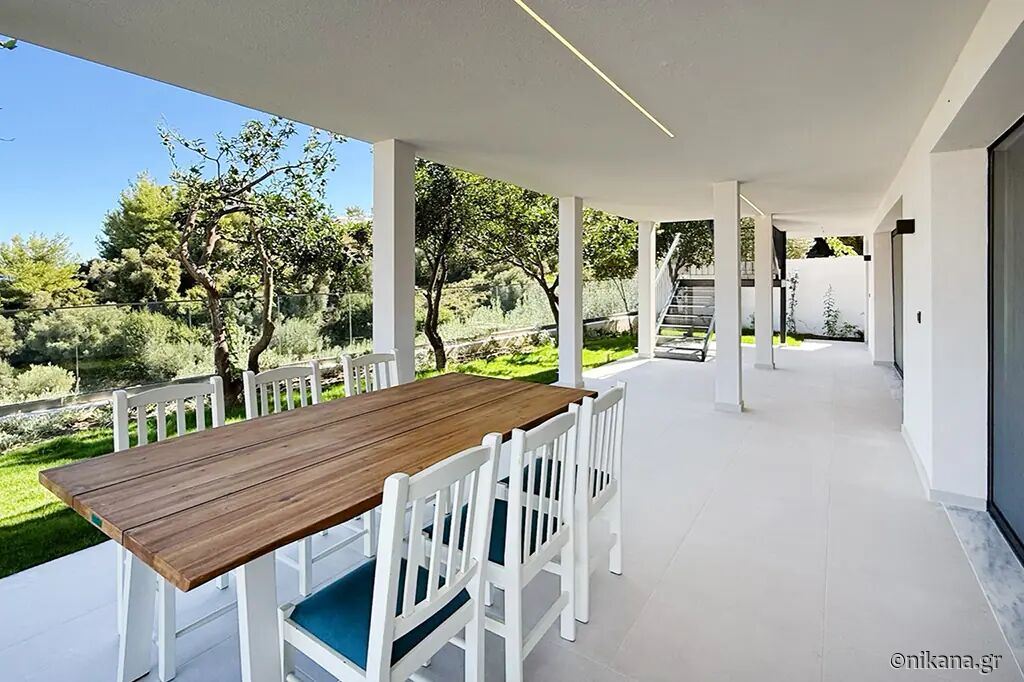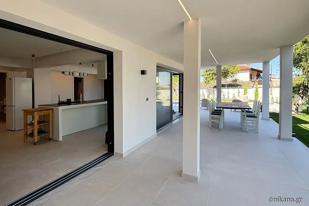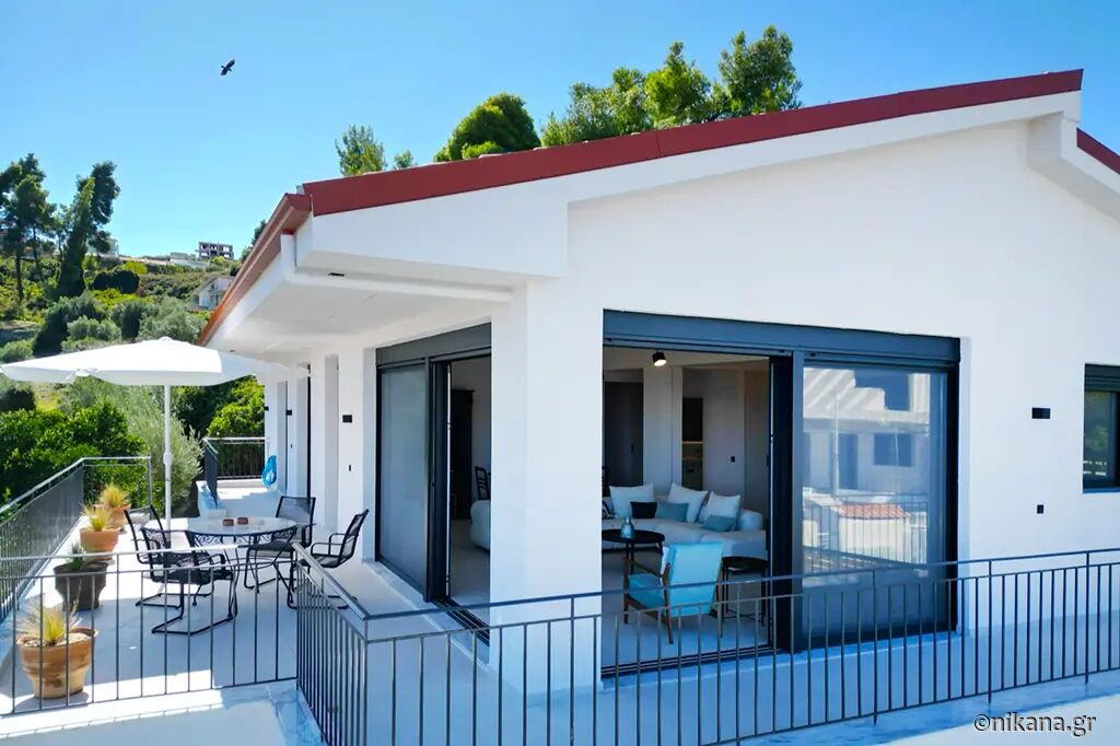 La etajul vilei se află un balcon echipat cu o zonă de relaxare, cu o priveliște parțială spre mare, în timp ce la parter există o verandă, de asemenea amenajată cu mobilier confortabil, destinată relaxării și petrecerii timpului în aer liber. Cazarea a fost concepută pentru a oferi oaspeților o experiență completă de confort și relaxare, cu spații comune atent amenajate care invită la socializare și relaxare în aer liber. În apropierea vilei se află o piscină elegantă, în jurul căreia sunt amplasate șezlonguri confortabile pentru plajă și relaxare. Acest spațiu oferă posibilitatea de răcorire pe parcursul zilei, dar și de plăcute întâlniri de seară la umbră, creând o atmosferă perfectă pentru relaxare.