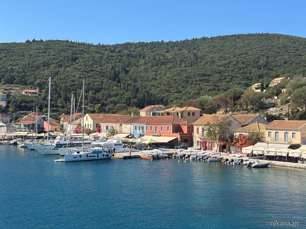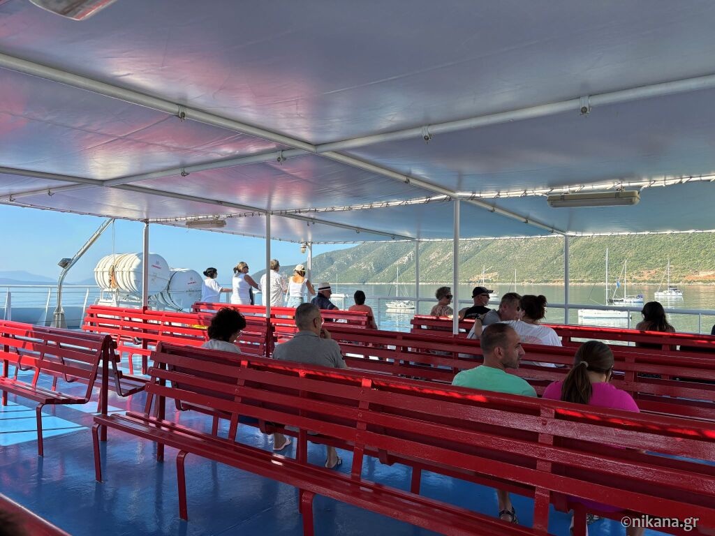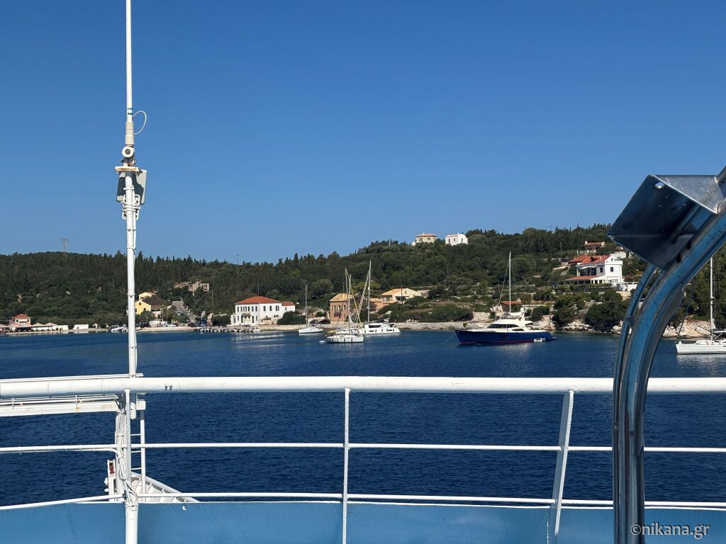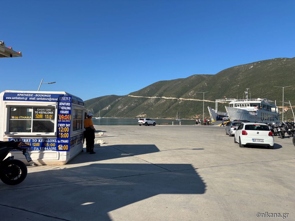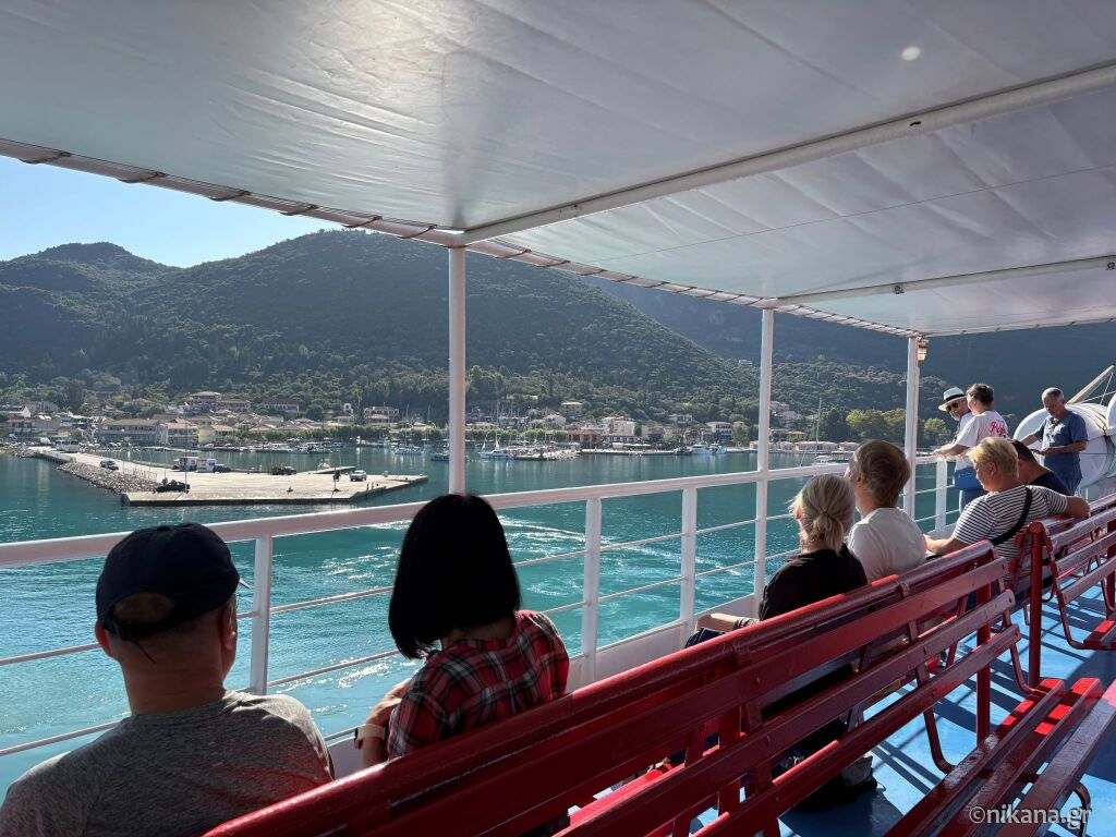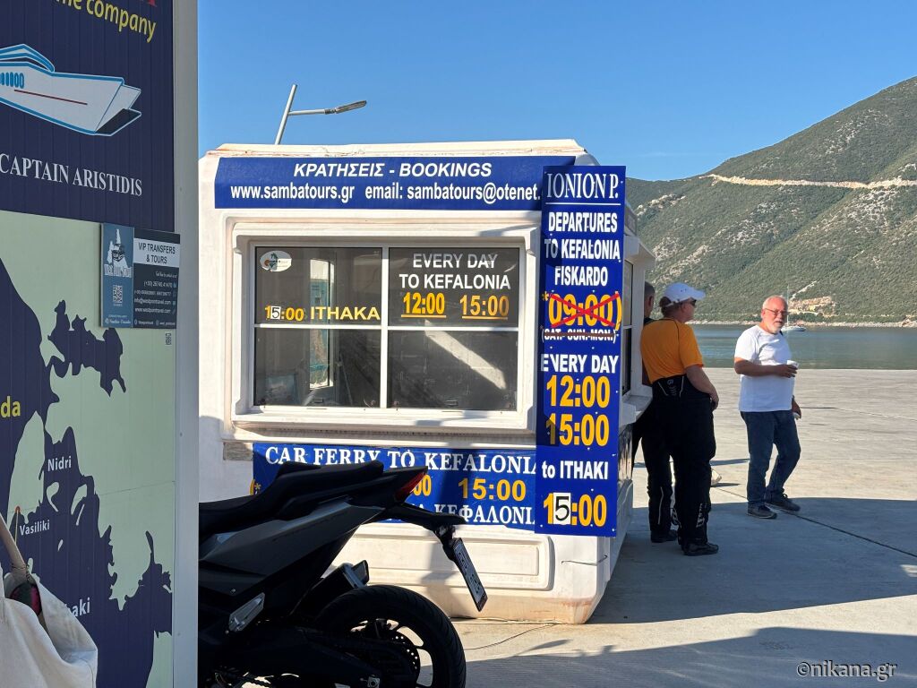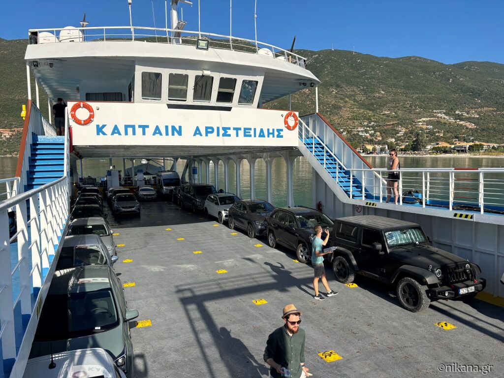 În timpul sezonului, de la Lefkada, feriboturile companiei West Ferry operează de trei ori pe zi, în timp ce în afara sezonului există una sau două plecări. Călătoria durează aproximativ 1 oră și 45 de minute. Prețul biletului pentru adulți este de 8,5 euro, iar pentru copii este de 4,3 euro. Copiii cu vârsta de până la 5 ani nu plătesc transportul. Prețul transportului pentru mașini este de 35 de euro pentru vehicule mici și 40 de euro pentru cele mai lungi (>,25 m). Programul de plecări poate fi consultat pe site-ul operatorului, aici.