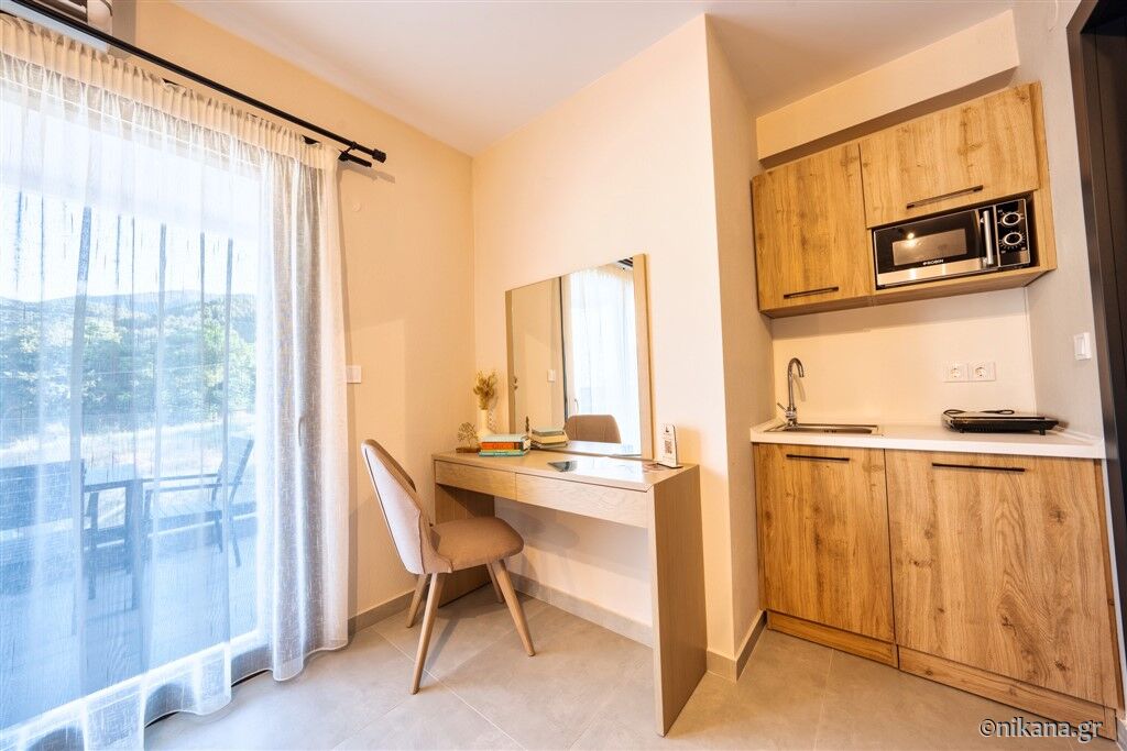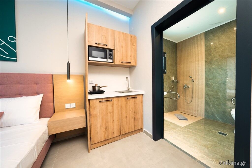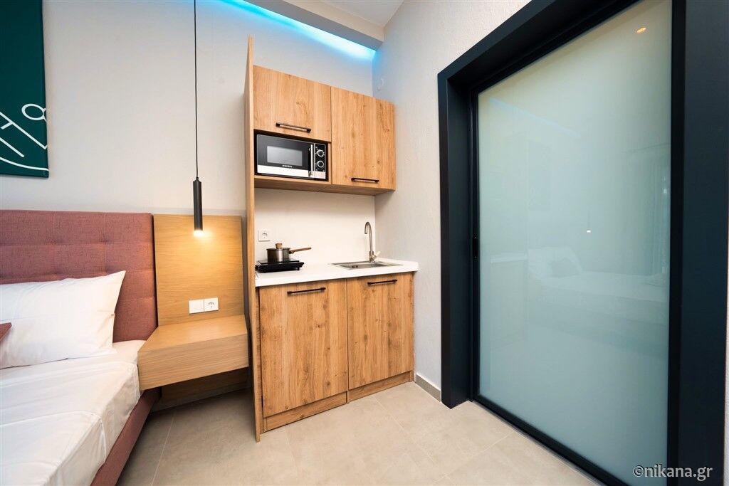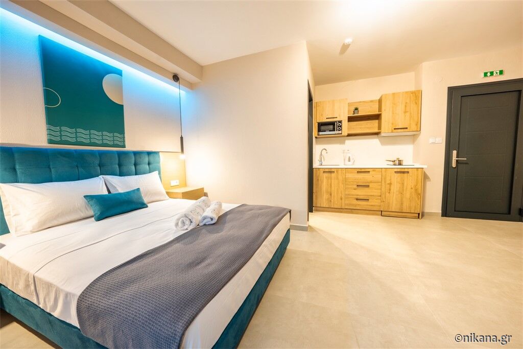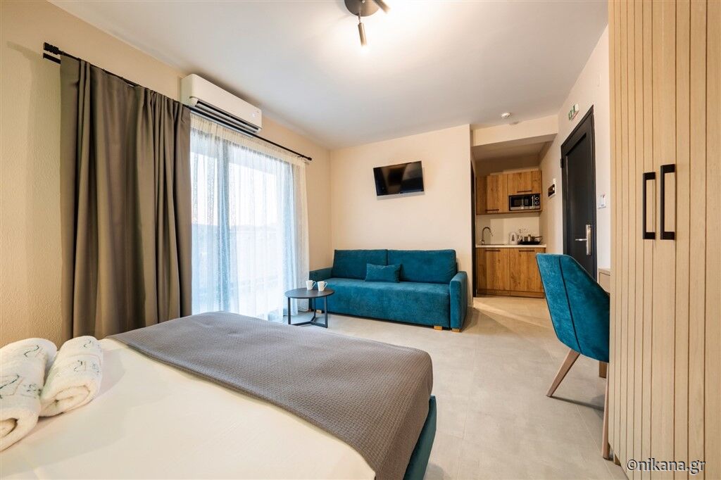 În ofertă se regăsesc opt studiouri și două apartamente, situate la parter sau la primul etaj. Studiourile triple pot găzdui maximum două persoane adulte și un copil cu vârsta de până la 12 ani. Unul dintre acestea este adaptat pentru persoane cu dizabilități și este dotat standard cu un pat matrimonial, iar patul suplimentar pentru copil se adaugă la cerere. În celelalte studiouri triple se află un pat matrimonial și o canapea pentru o persoană.