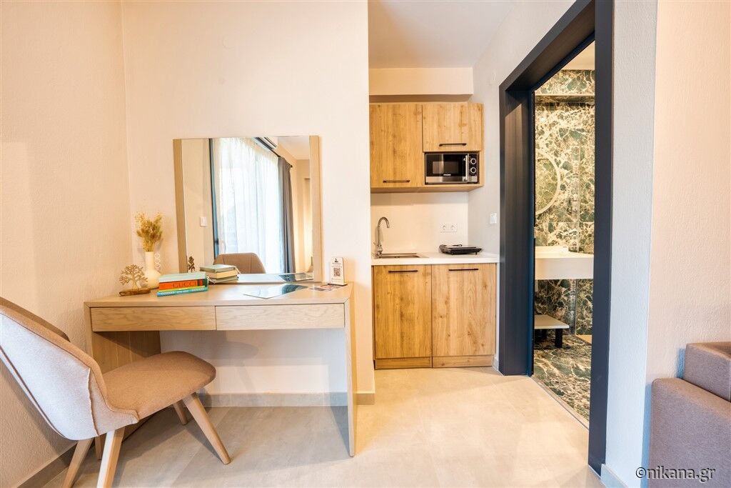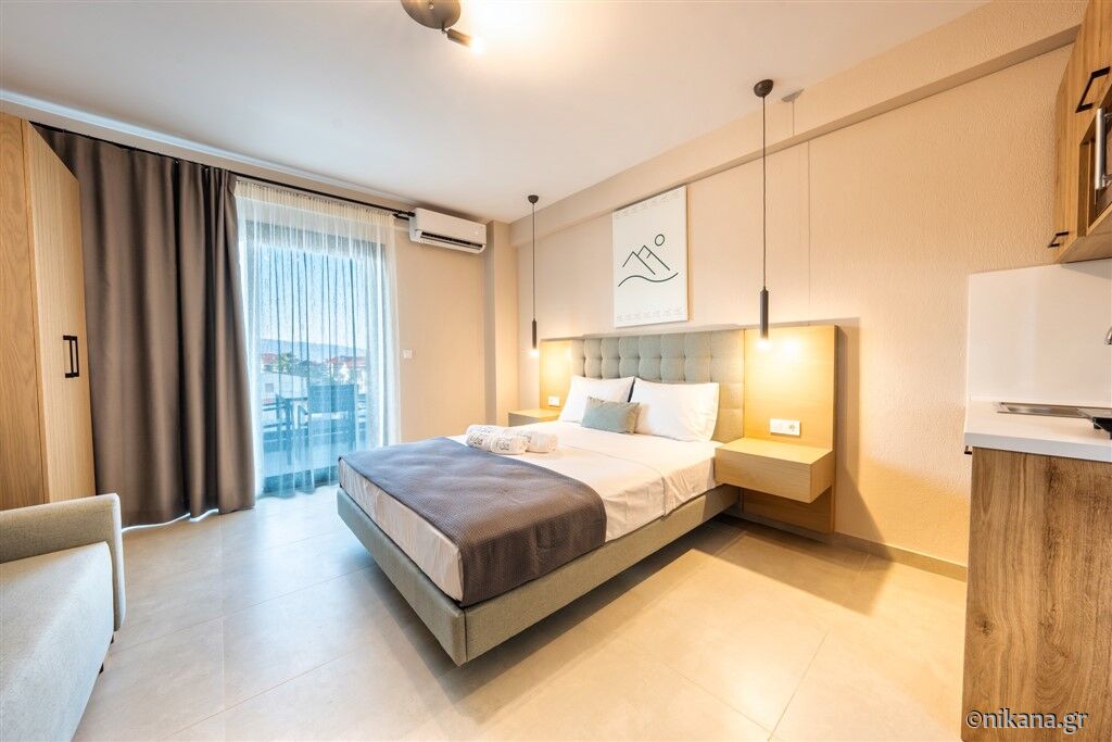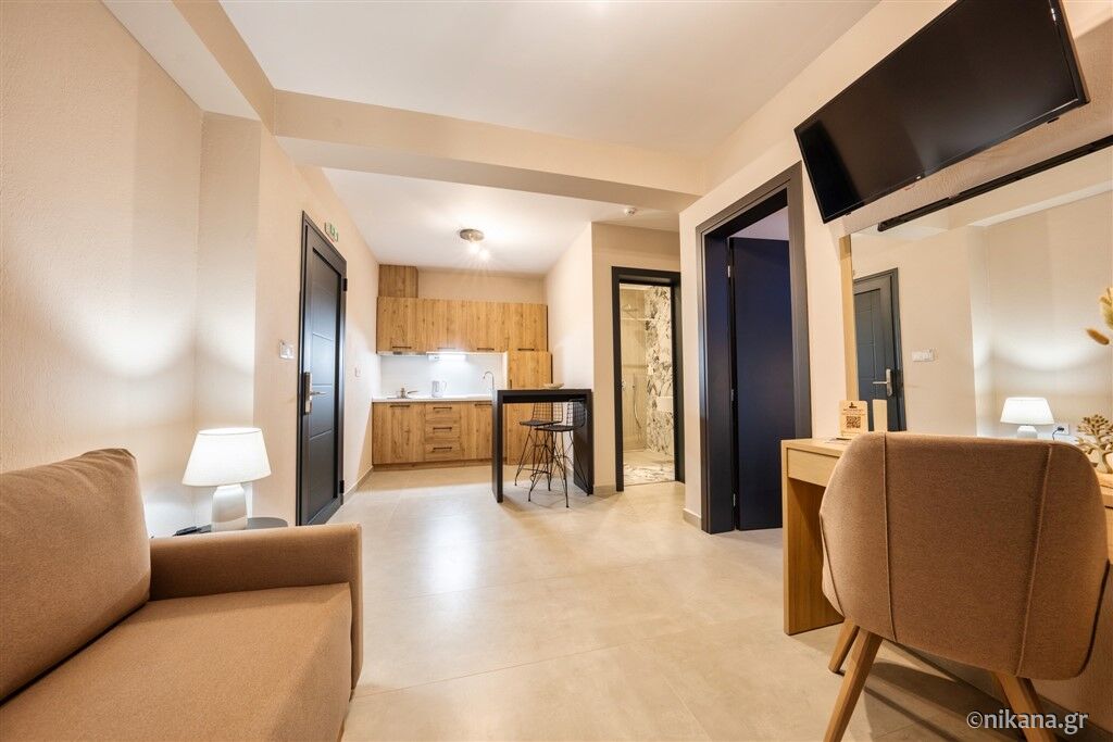 Lofos Luxury Living Hotel este situat într-o zonă mai liniștită a localității Stavros, la aproximativ 700 de metri de plajă, și reprezintă alegerea ideală pentru oaspeții care caută relaxare și confort. Unitatea de cazare este modern amenajată, cu un interior contemporan și detalii atent alese, care oferă o senzație de lux și comoditate pe tot parcursul sejurului. Oaspeții au la dispoziție o piscină interioară și o saună, ideale pentru relaxare completă și pentru a se bucura de fiecare moment al vacanței. Șederea la hotel oferă o experiență specială de relaxare, fie că ziua începe cu o sesiune de înot, fie că se încheie cu momente de destindere în zona de wellness. Stavros este o stațiune plăcută, care îmbină o atmosferă liniștită cu toate facilitățile necesare pentru o vacanță fără griji. Localitatea este cunoscută pentru plajele sale lungi cu nisip, marea curată și promenadele amenajate, precum și pentru numeroasele taverne, cafenele și magazine care contribuie la autenticitatea ambientului grecesc. Stavros este, de asemenea, o stațiune cu aer terapeutic, situată la întâlnirea dintre mare și munții din apropiere, într-o zonă unde se intersectează curenții de aer, ceea ce creează un climat plăcut și asigură un aer extrem de curat și sănătos.