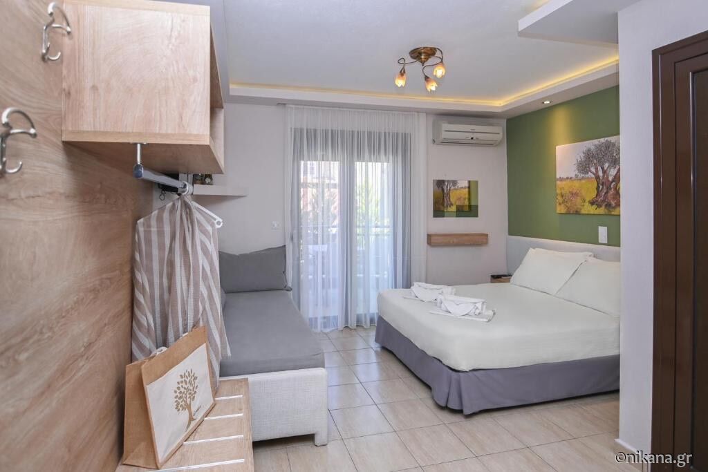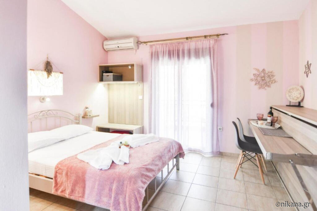 Cel mai ușor mod de a ajunge la această unitate de cazare este să vă deconectați de la șoseaua principală Sarti - Sykia în a treia intersecție la stânga, să mergeți înainte aproximativ 200 de metri și veți vedea această casă pe partea stângă.