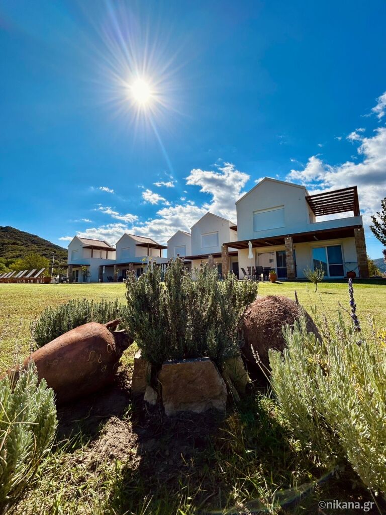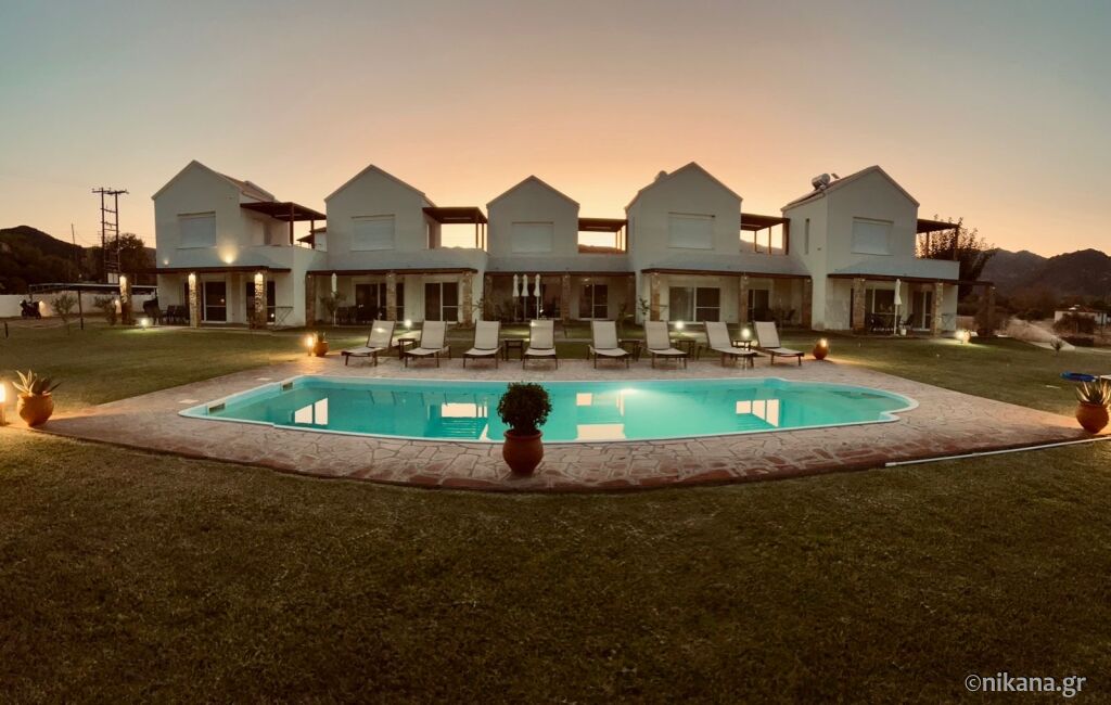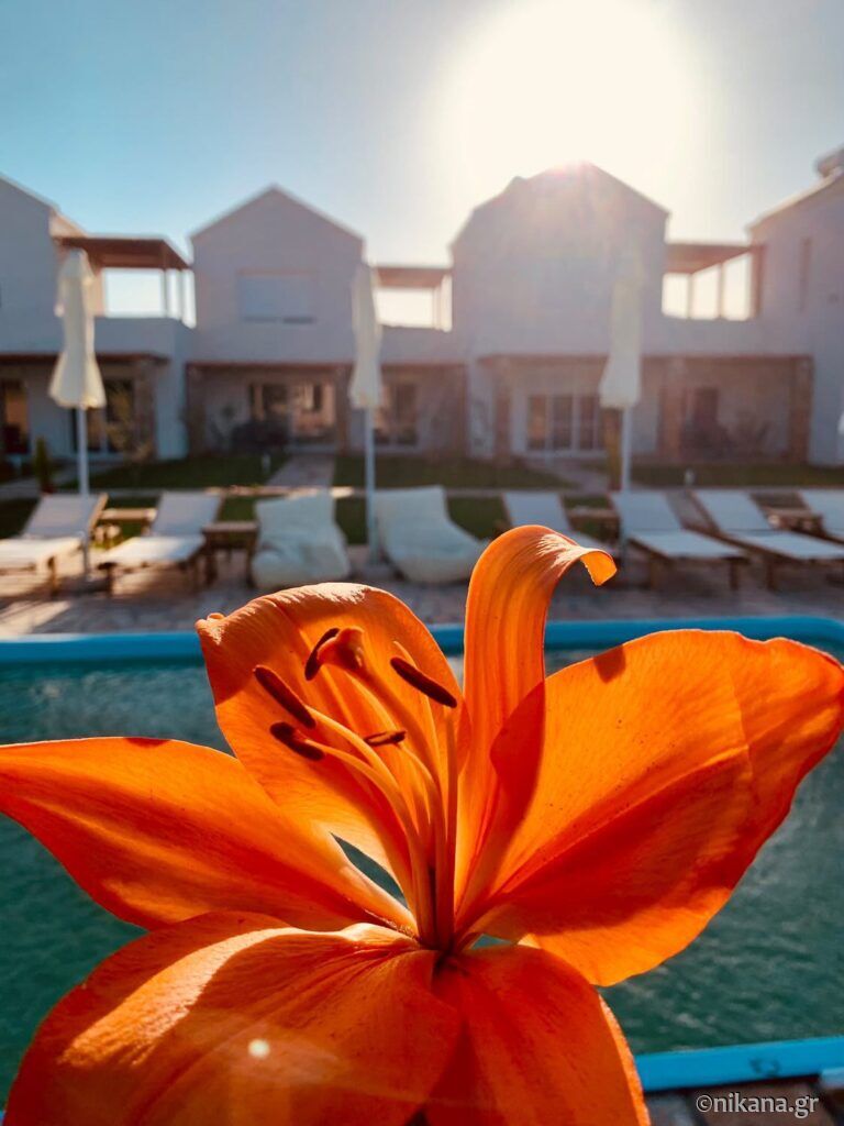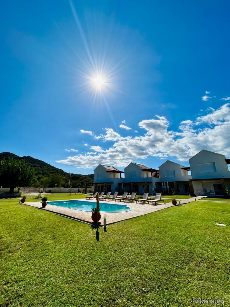 În curtea spațioasă, lângă șoseaua principală, se află nou construitele locuințe cu piscină Dimi’s Luxury Suites, care ar putea fi o alegere excelentă pentru cei cărora apropierea de plajă nu le este importantă, ci doresc să-și petreacă vacanța în liniște.
