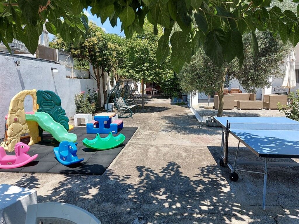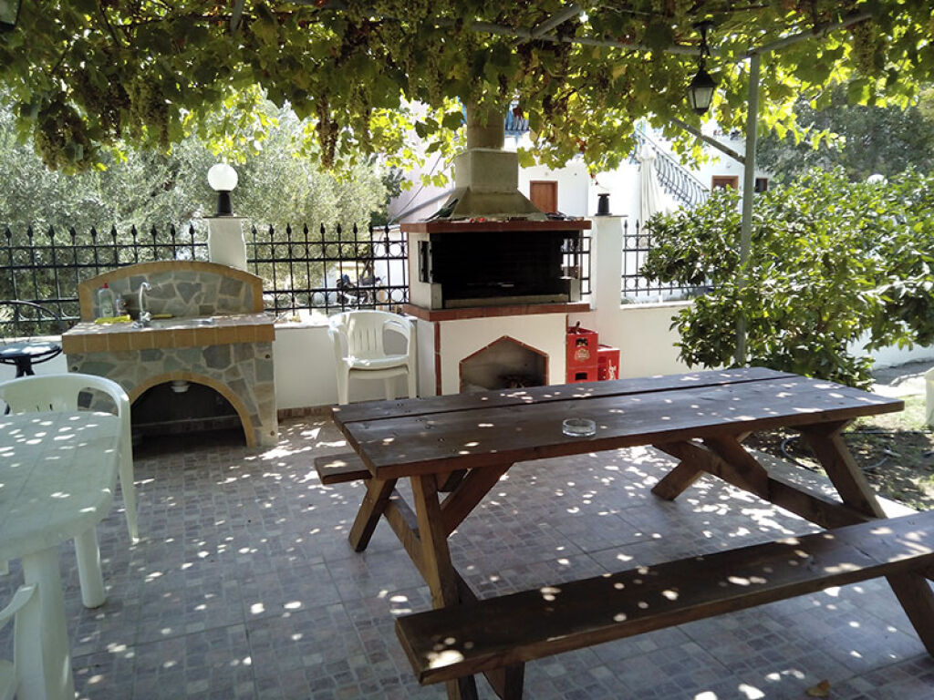 Curtea din fața unității este frumos amenajată, cu seturi de mobilier de exterior, jucării pentru copii, leagăne, umbrele de soare, umbră naturală și vegetație, grătar zidit, duș și masă de tenis de masă. În spatele curții se află parcarea, cu suficiente locuri pentru toți oaspeții.