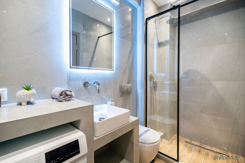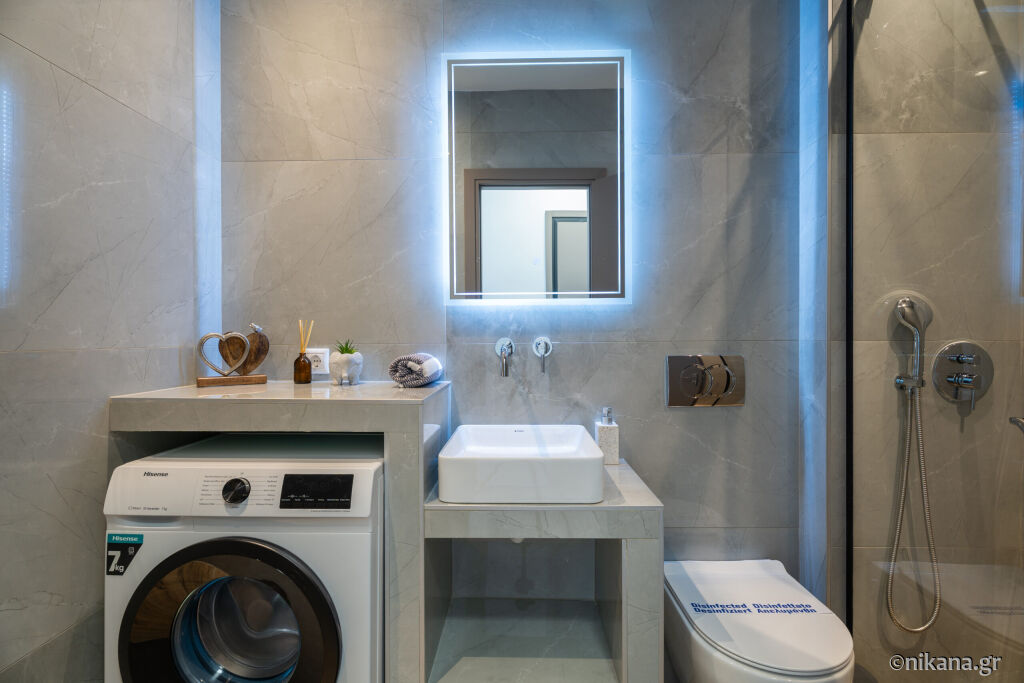 Wave & Wind Luxury Apartment in Neos Marmaras este alegerea ideală pentru familii și prieteni care doresc cazare modernă și contemporană într-un mediu liniștit. La 140 de metri de proprietate se află o mică golfuleț natural potrivit pentru o răcorire rapidă, în timp ce plaja urbană amenajată, cunoscută pentru oferta sa bogată, se află la aproximativ 1,6 km distanță. Interiorul apartamentului este decorat într-un stil contemporan care creează o atmosferă plăcută pentru o vacanță relaxantă, iar priveliștea directă către mare îmbogățește experiența completă a șederii.