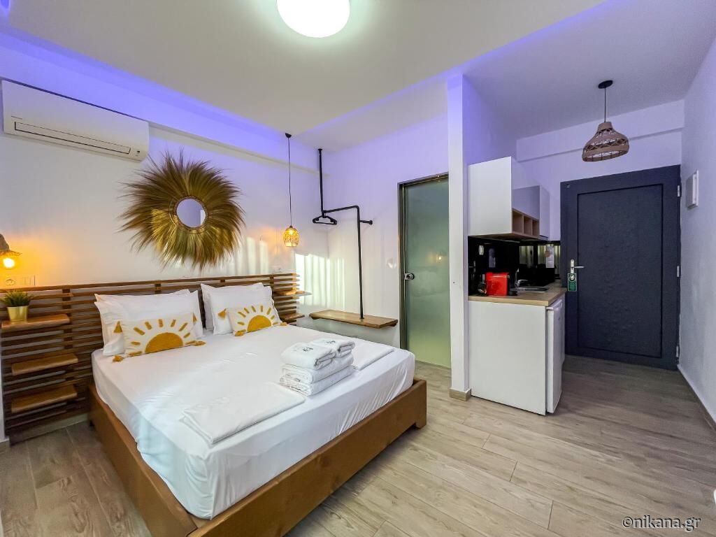 Bamboo Luxury Studios se află în Nikiti, una dintre cele mai frumoase și bine întreținute stațiuni de pe coasta vestică a Sitoniei, reprezentând un loc de cazare modern și gândit cu atenție, destinat oaspeților care caută confort, ordine și liniște, cu o bună conectare la plajă și centrul orașului. Proprietatea este amplasată într-o zonă frumos amenajată din Nikiti, aproape de principalele artere de circulație, magazine și restaurante, dar în același timp suficient de departe de agitație pentru a asigura o ședere liniștită și plăcută. Plaja se află la aproximativ 500 de metri distanță, permițând acces rapid și ușor la mare fără a fi nevoie de utilizarea mașinii. Valoarea adăugată a acestei unități de cazare constă în conceptul simplu și funcțional, în organizarea uniformă a tuturor studiourilor și în mediul liniștit care le oferă oaspeților o ședere relaxantă și confortabilă, cu o bună conexiune la plajă și la toate facilitățile importante din Nikiti.