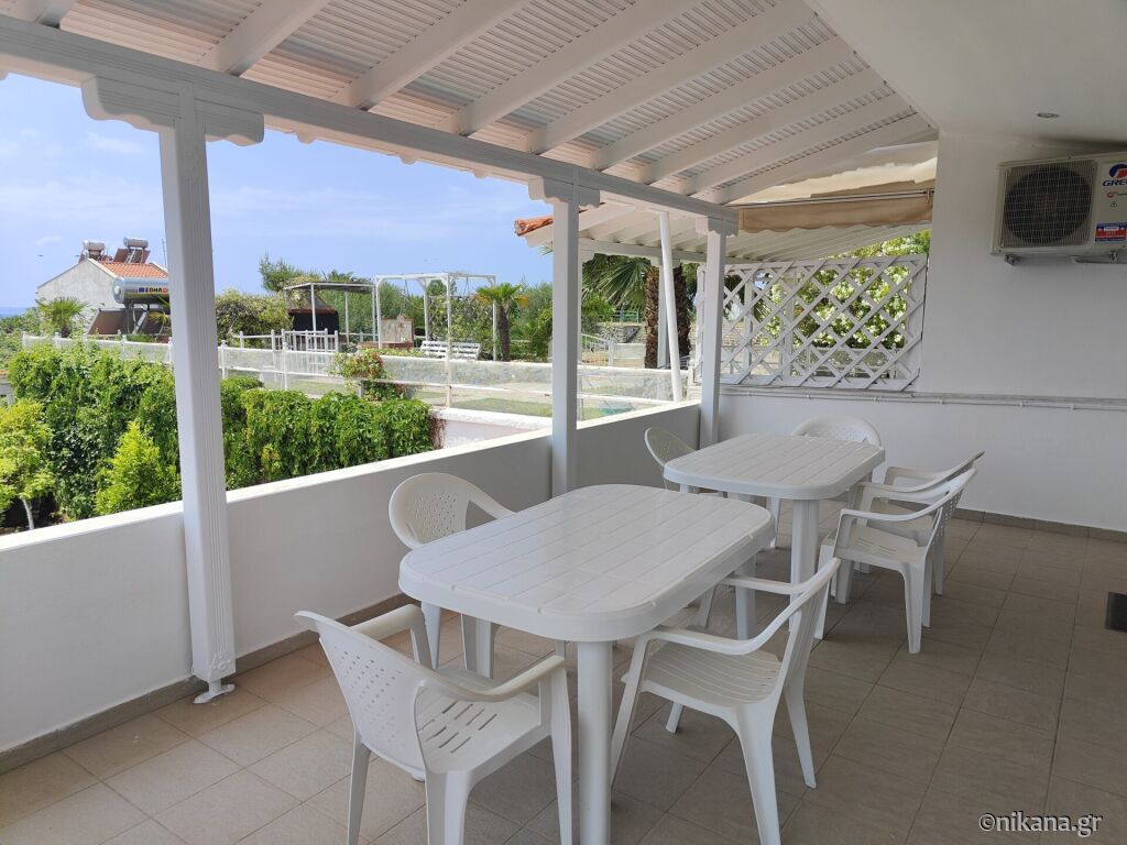 Vila Trikorfo Beach se află la o distanță de 21 km de stațiunea populară Nikiti, la 26 km de localitatea Nea Flogita, iar de cel mai apropiat aeroport din Salonic este la 68 km distanță.