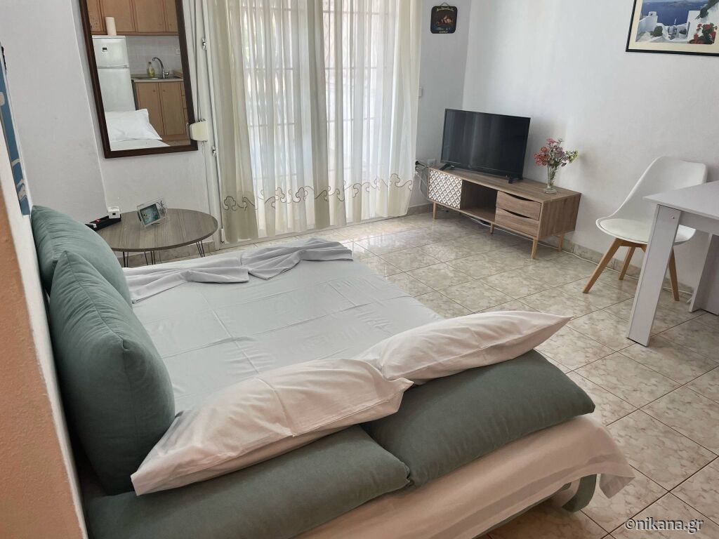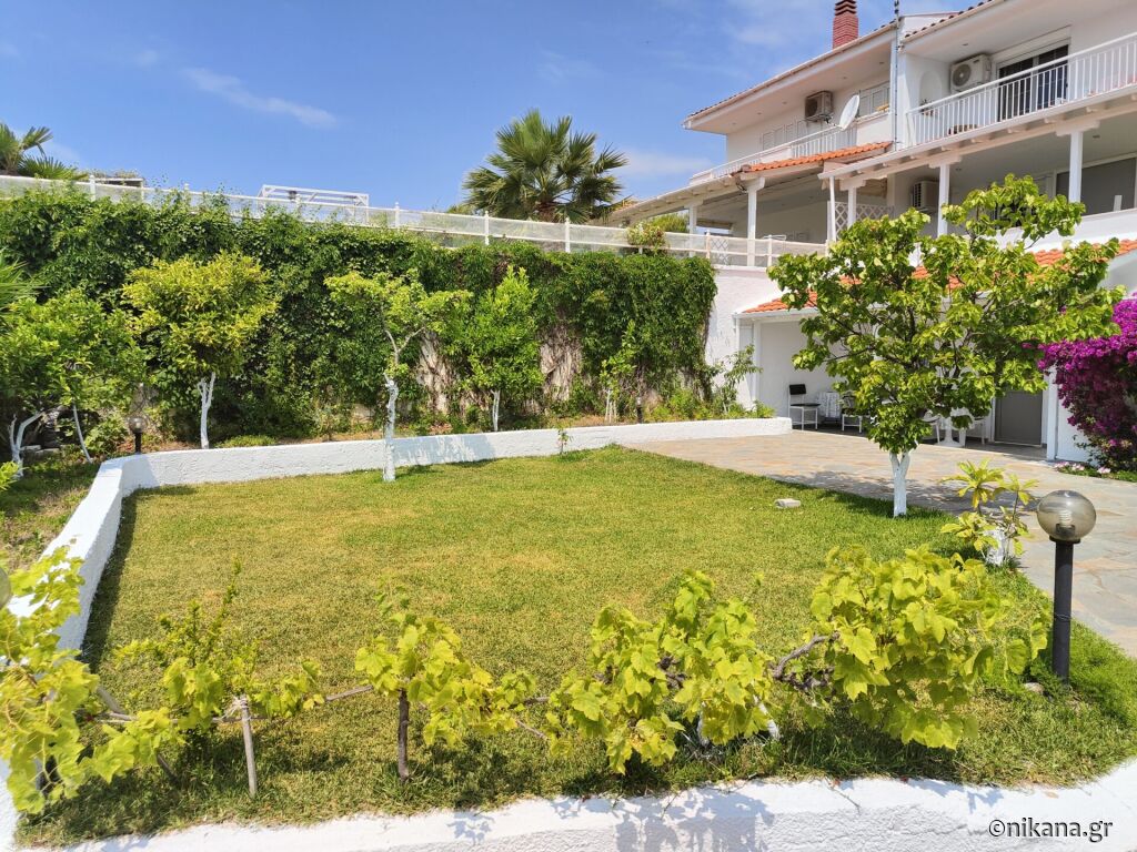 Vila Trikorfo Beach se află într-o zonă liniștită a pitorescului sat Gerakini din Halkidiki, înconjurată de vegetație luxuriantă. Curtea spațioasă, dotată cu facilități pentru copii și adulți, inclusiv un loc de joacă pentru copii și un grătar privat, creează un ambient perfect pentru relaxare și distracție pentru toate generațiile.