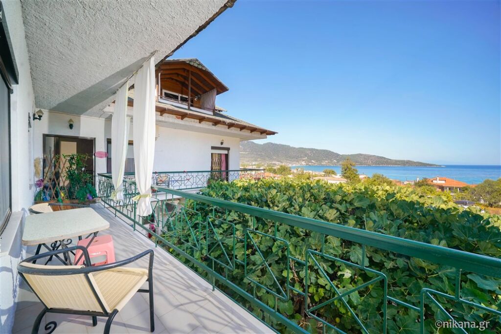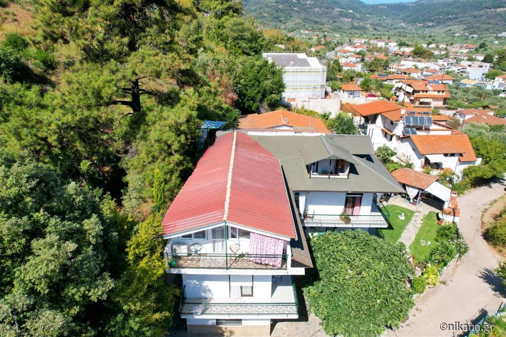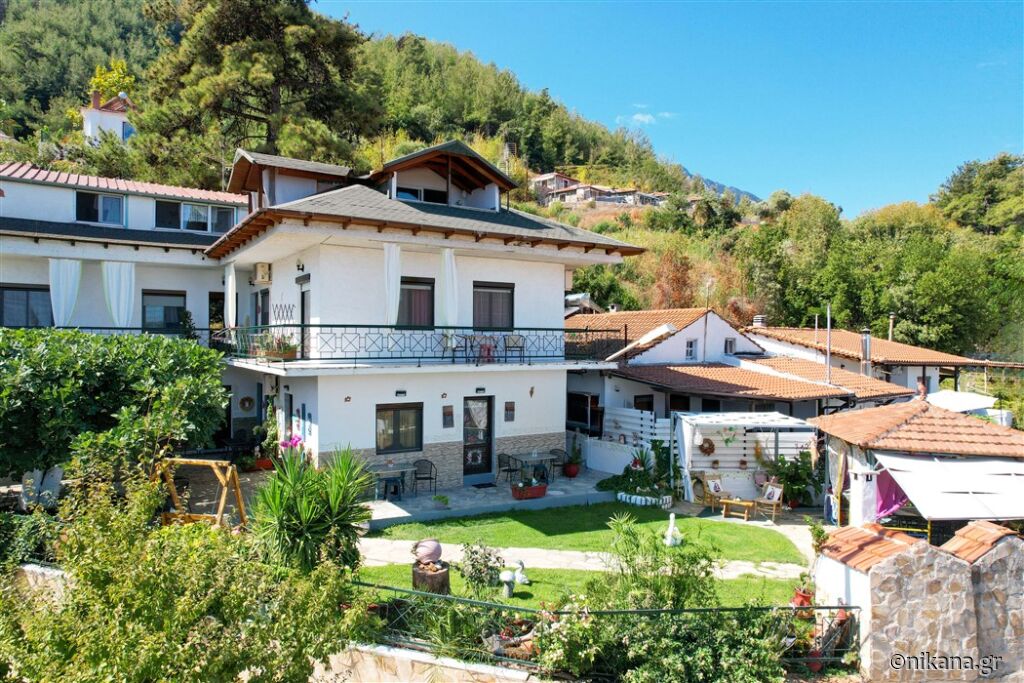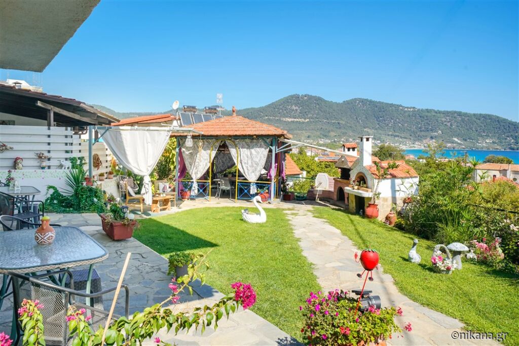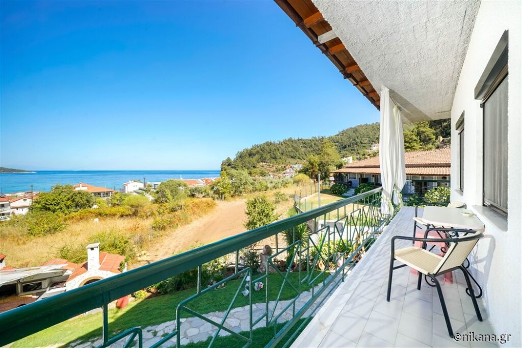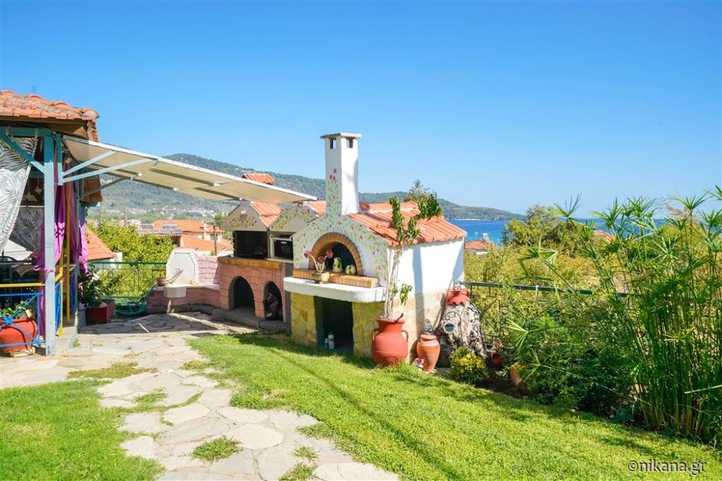 Vila Ifigenia este formată din două clădiri conectate, cu intrări din curte în față sau cu scări și coridoare exterioare în spate. În partea din spate a curții se află un loc de joacă pentru copii cu tobogan, leagăne, balansoare și cai de leagăn, iar în partea din față se află o peluză frumos amenajată cu mese și scaune, alei pavate, un grătar zidit, un spațiu pentru luat masa sub un acoperiș, flori, palmieri și o vedere fenomenală spre Skala Potamia și mare.