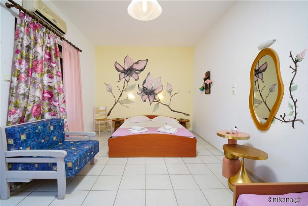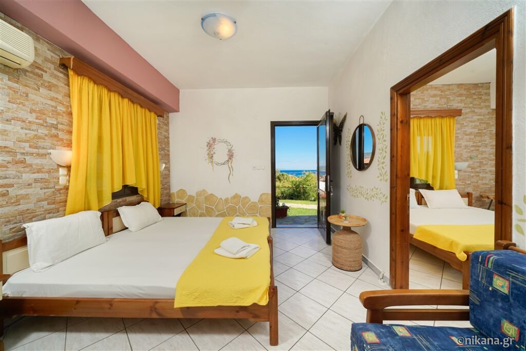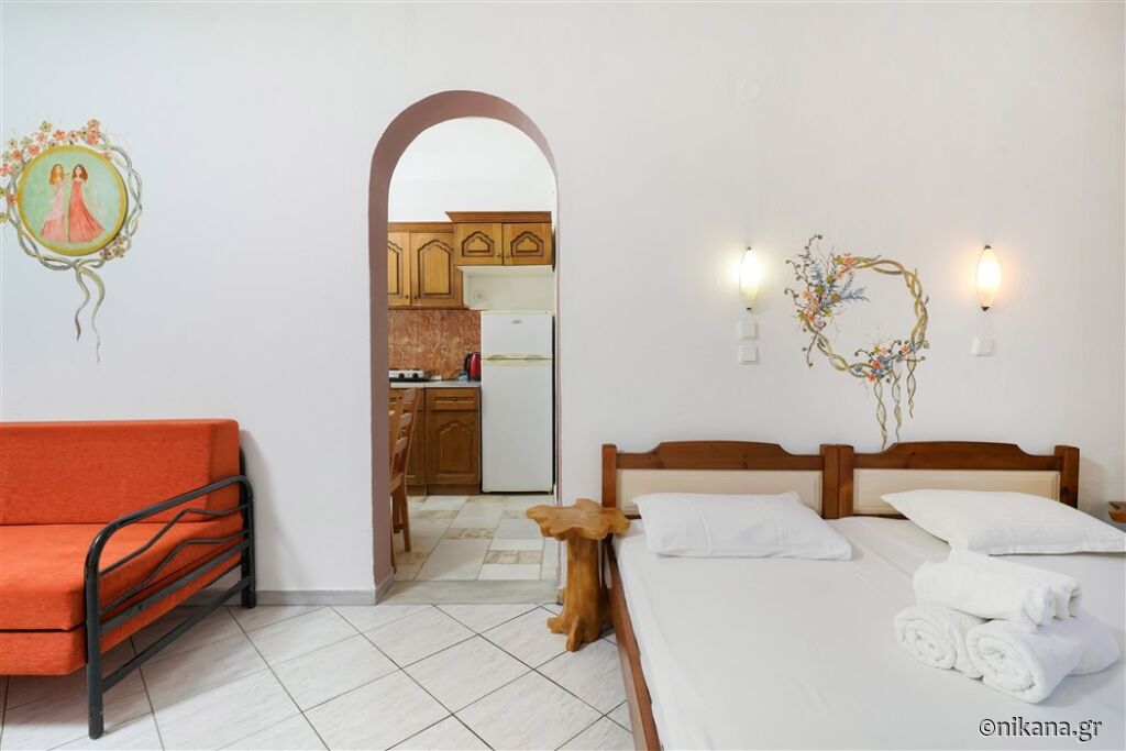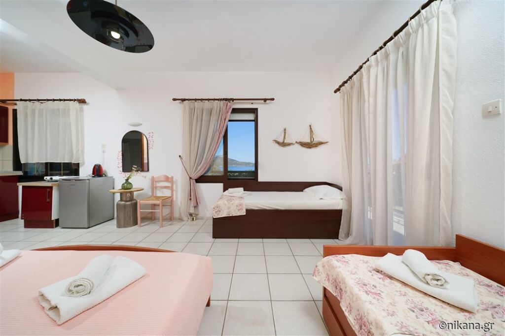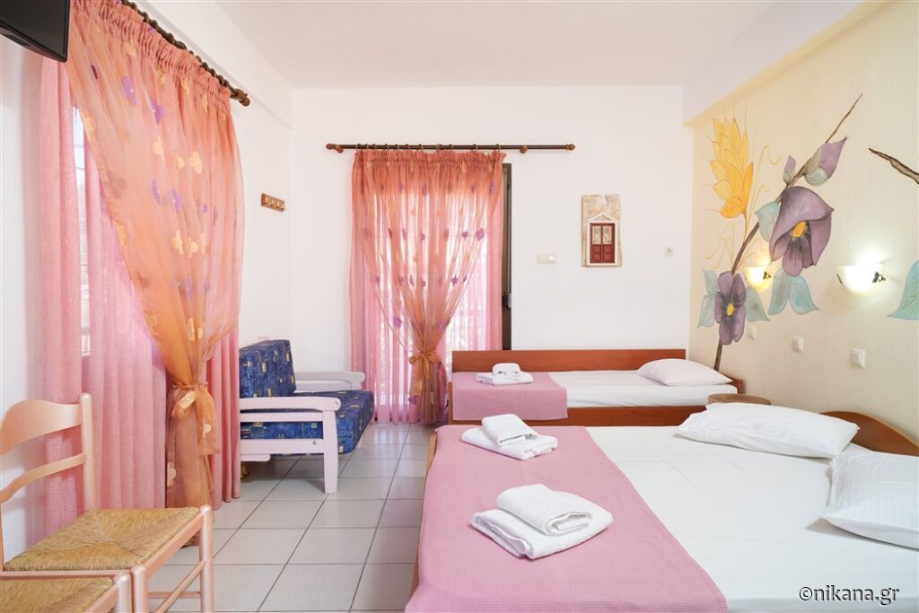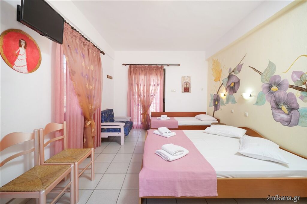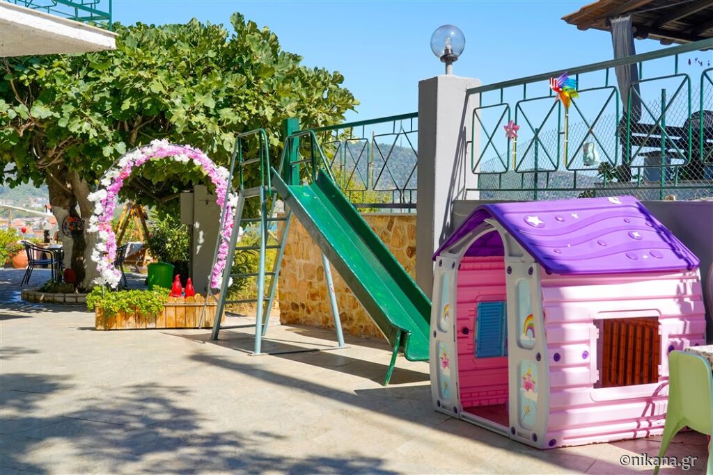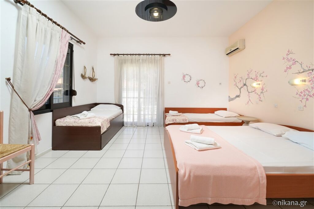 Ifigenia este o vilă medie, cu curtea frumos amenajată și apartamente spațioase și neobișnuite. Este excelentă ca bază pentru a vizita insula, este protejată de trafic și zgomot, dar totuși aproape de toate facilitățile. În curte se află un mic paradis pentru cei mai tineri vizitatori, având o mulțime de jucării.