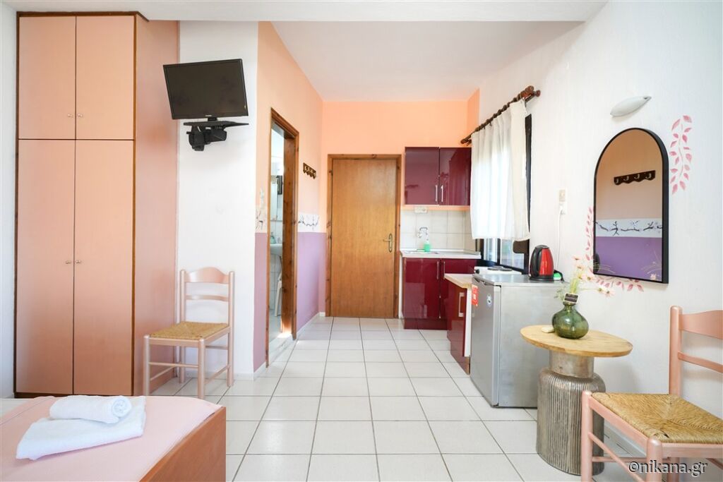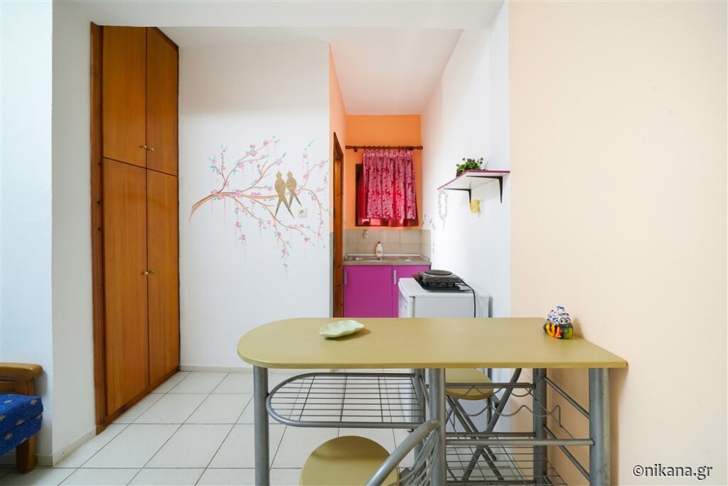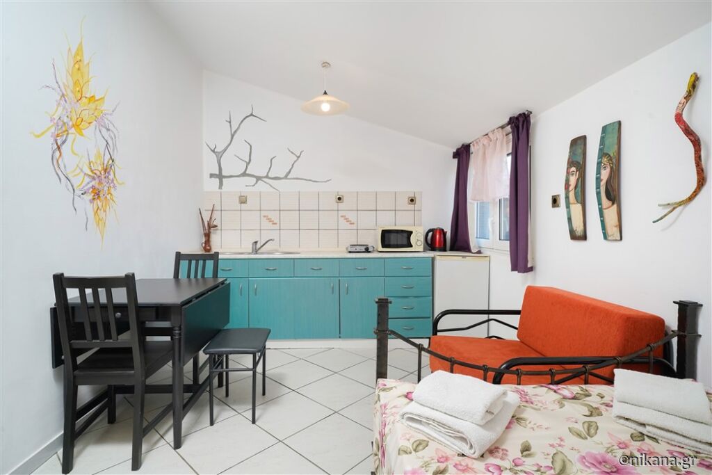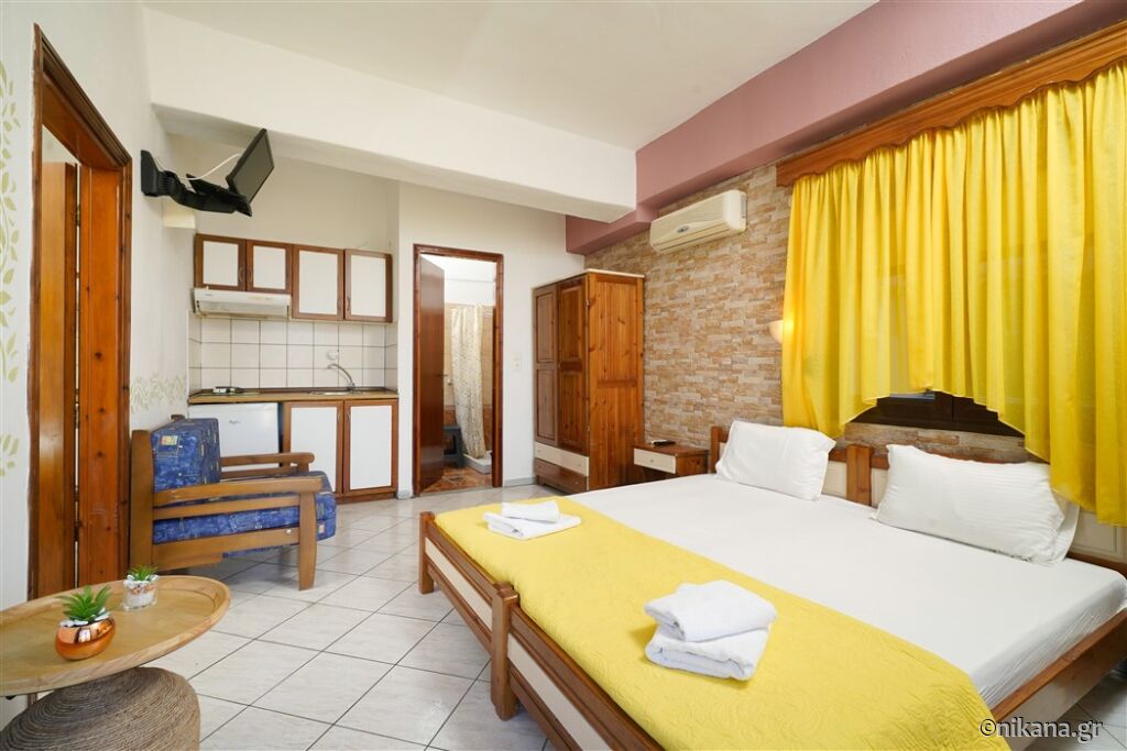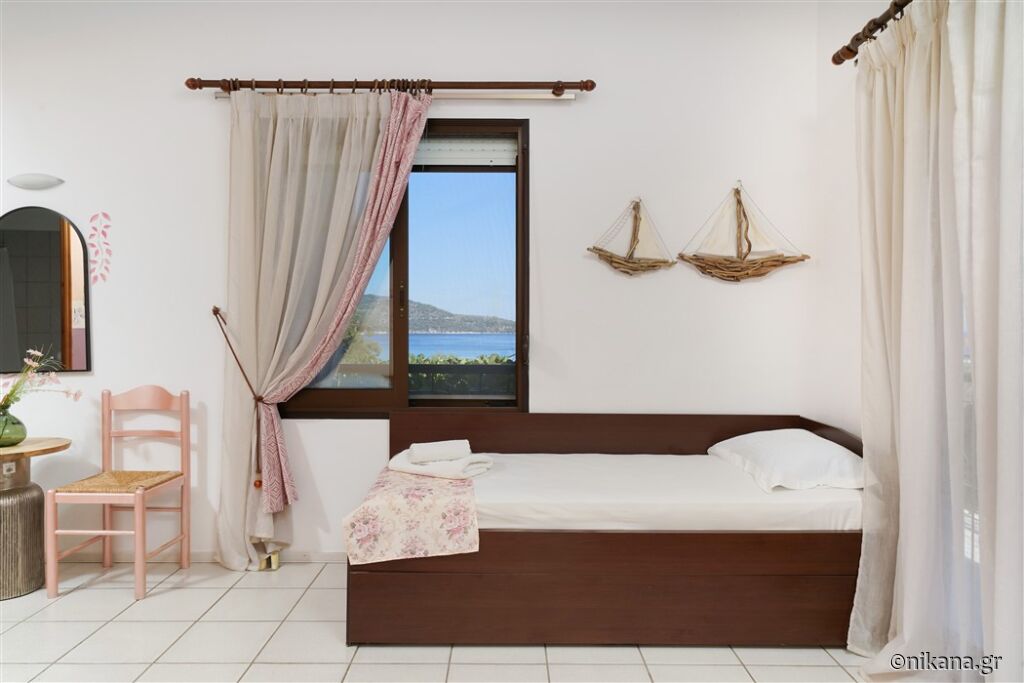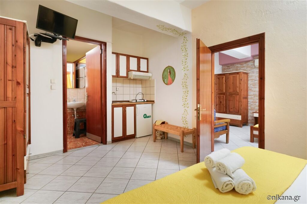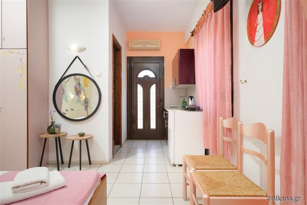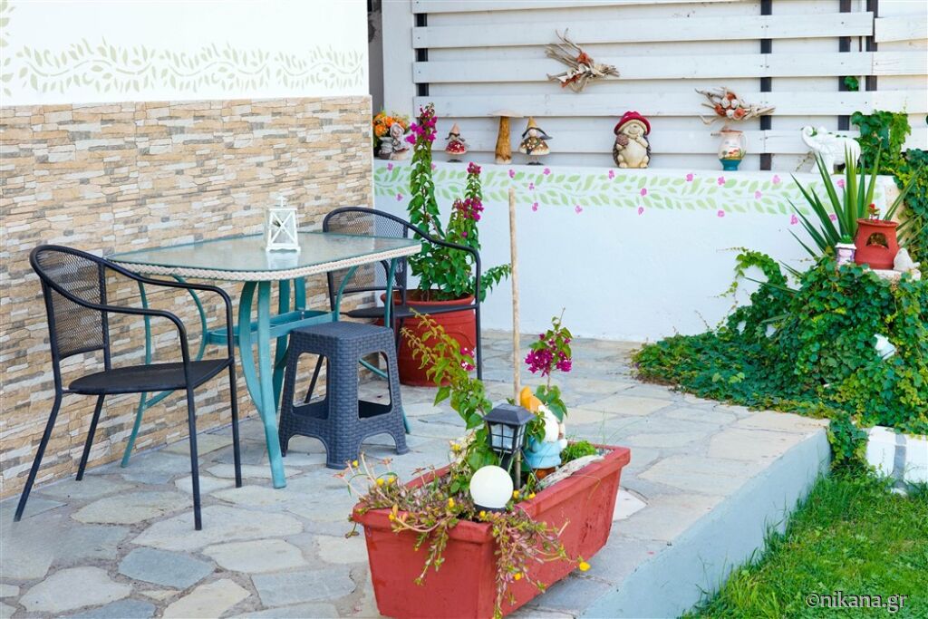 Ifigenia este o vilă medie, cu curtea frumos amenajată și apartamente spațioase și neobișnuite. Este excelentă ca bază pentru a vizita insula, este protejată de trafic și zgomot, dar totuși aproape de toate facilitățile. În curte se află un mic paradis pentru cei mai tineri vizitatori, având o mulțime de jucării.