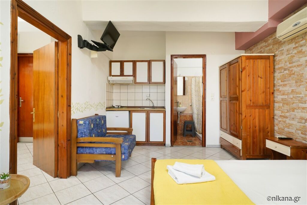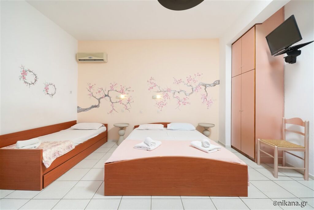 - Evterpi, cu trei paturi de o persoană și o canapea