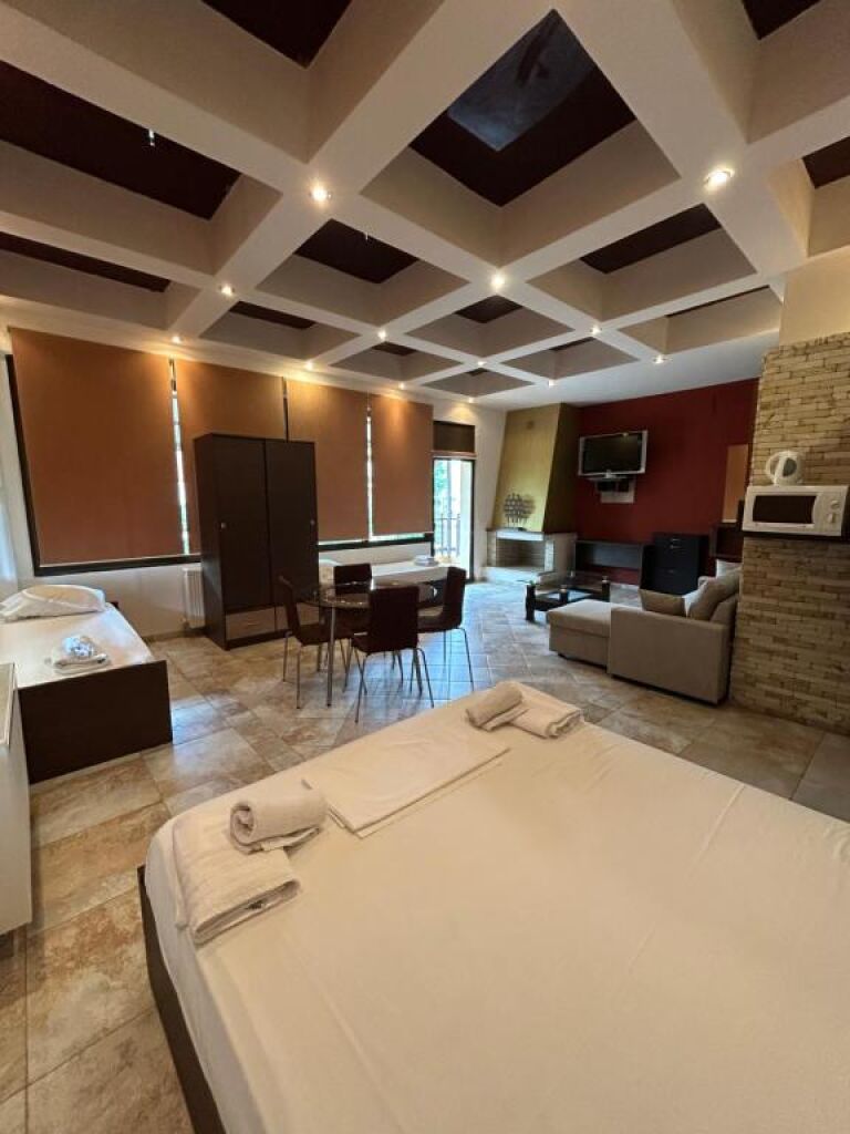 O cameră cu cinci paturi fără bucătărie (Deluxe Suite) are un pat francez, două paturi single și o canapea în aceeași cameră cu o chicinetă (fără plită, dar cu chiuvetă, frigider, fierbător și cuptor cu microunde). Este situată la primul etaj.
