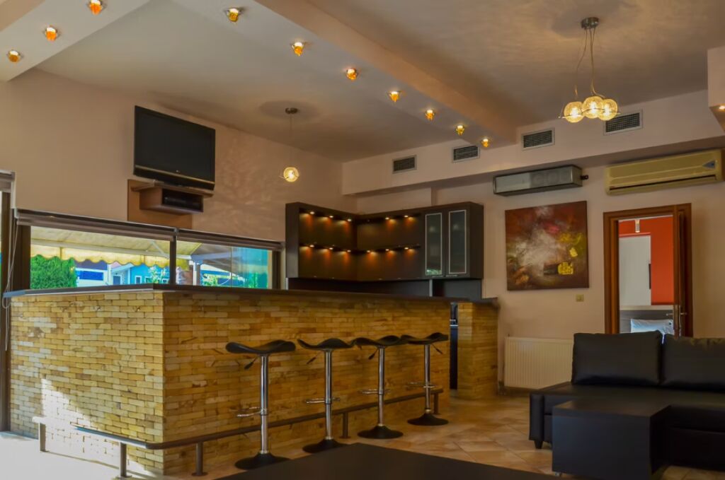 Hotelul are un bar foarte frumos amenajat, cu o zonă acoperită și o zonă în aer liber, unde pe lângă băuturi, puteți comanda și câteva mese mai simple (sandvișuri, pizza, paste). În bar, în afara videoclipurilor muzicale și a evenimentelor sportive pe un televizor LCD mare, se difuzează exclusiv muzică liniștită și plăcută.