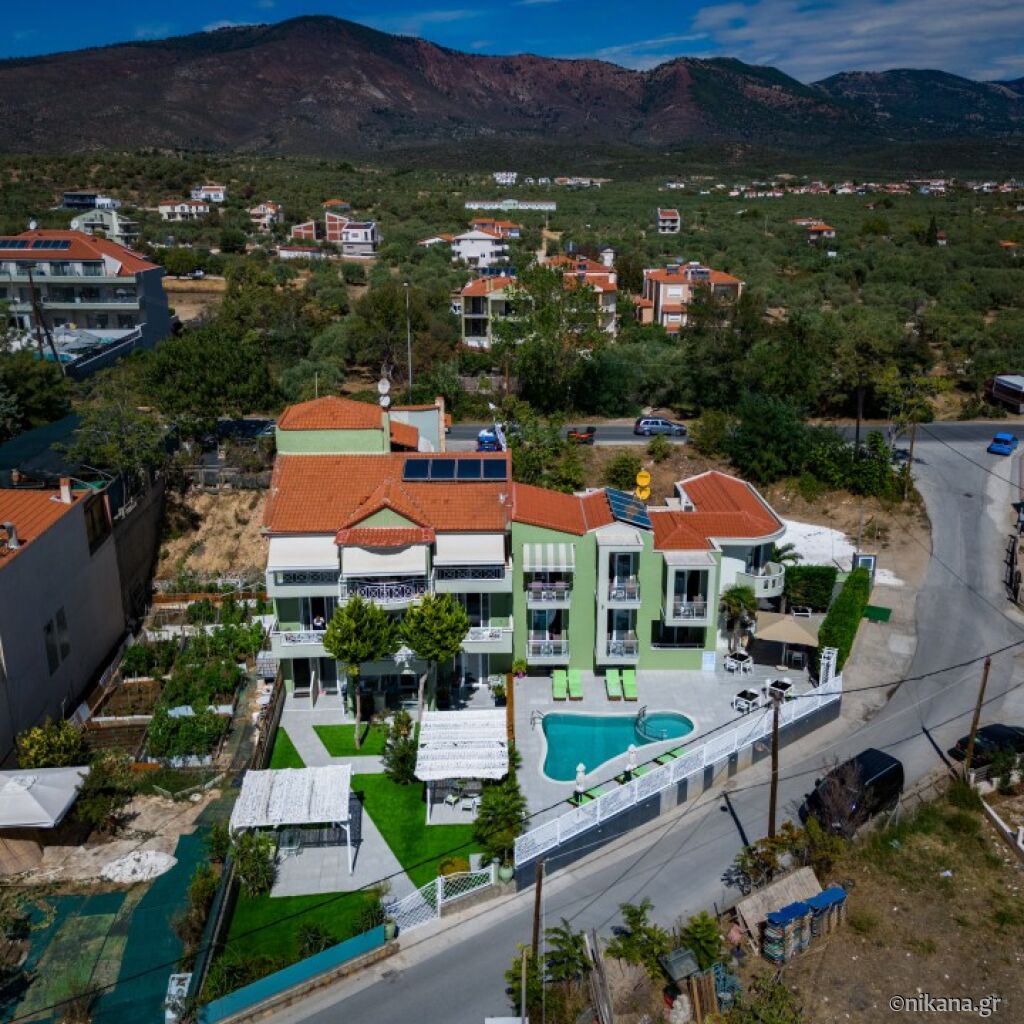 Unitatea de cazare este situată în Limenaria, lângă drumul principal, la aproximativ 100m de [plajă](https://nikana.gr/ro/ghid/thassos/plaje/1929/plaja-oraseneasca-din-limenaria, la 300m de centru, iar cel mai apropiat supermarket se află la 160m distanță.