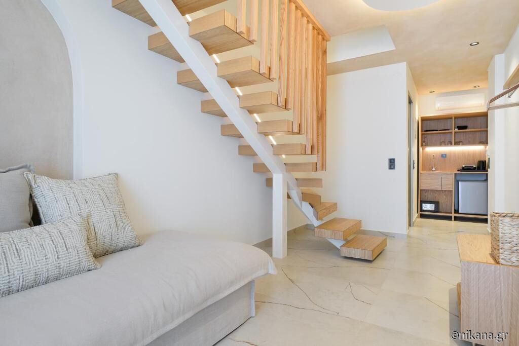 Maisonette-ul (40m²) are o canapea extensibilă dublă și o baie la nivelul inferior, în timp ce la nivelul superior (care nu este separat de o ușă) există un pat dublu și o toaletă. Această unitate are două balcoane cu vedere la munte.