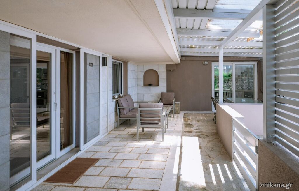 Papaoikonomou este o alegere excelentă pentru cei care doresc liniște și apropiere de plajă, deoarece vila este complet protejată de zgomot, dar totuși la mai puțin de un minut de mers pe jos de promenadă, magazine, brutărie și supermarket.